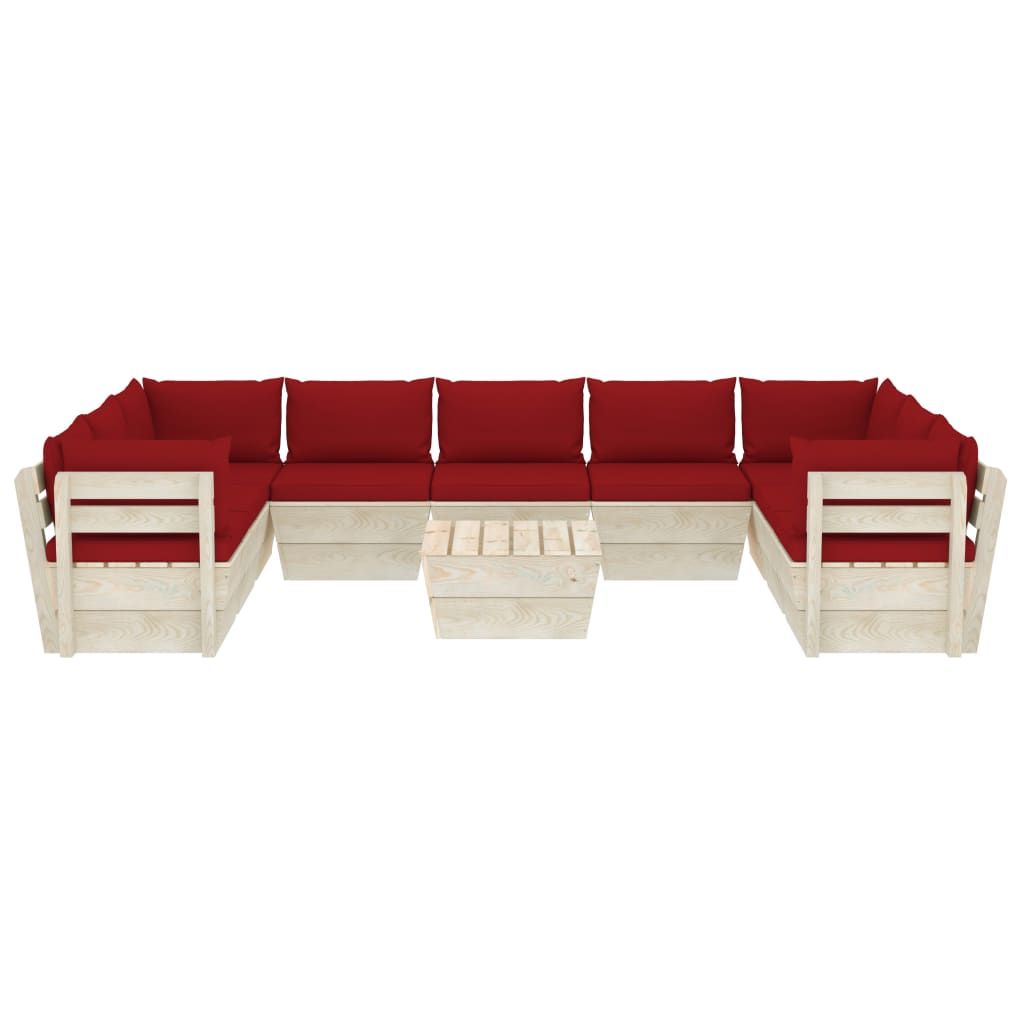 10-cz. ogrodowy zestaw wypoczynkowy z palet, poduszki, świerk