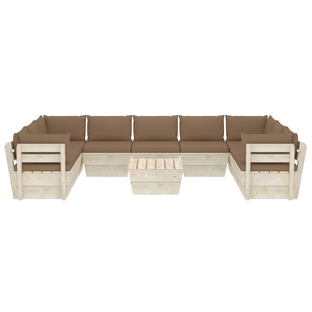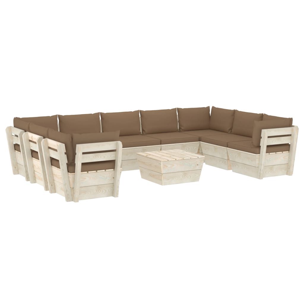 10-cz. ogrodowy zestaw wypoczynkowy z palet, poduszki, świerk