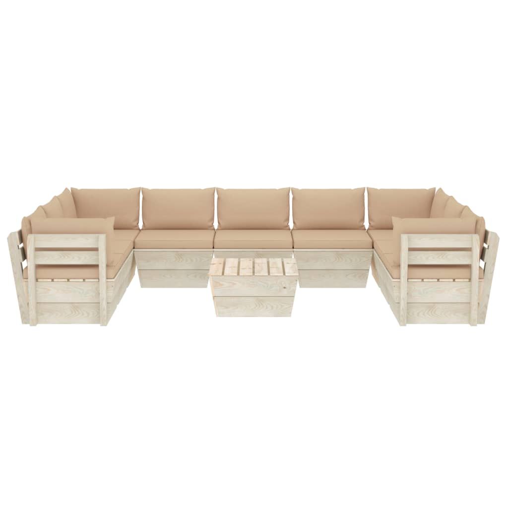 10-cz. ogrodowy zestaw wypoczynkowy z palet, poduszki, świerk