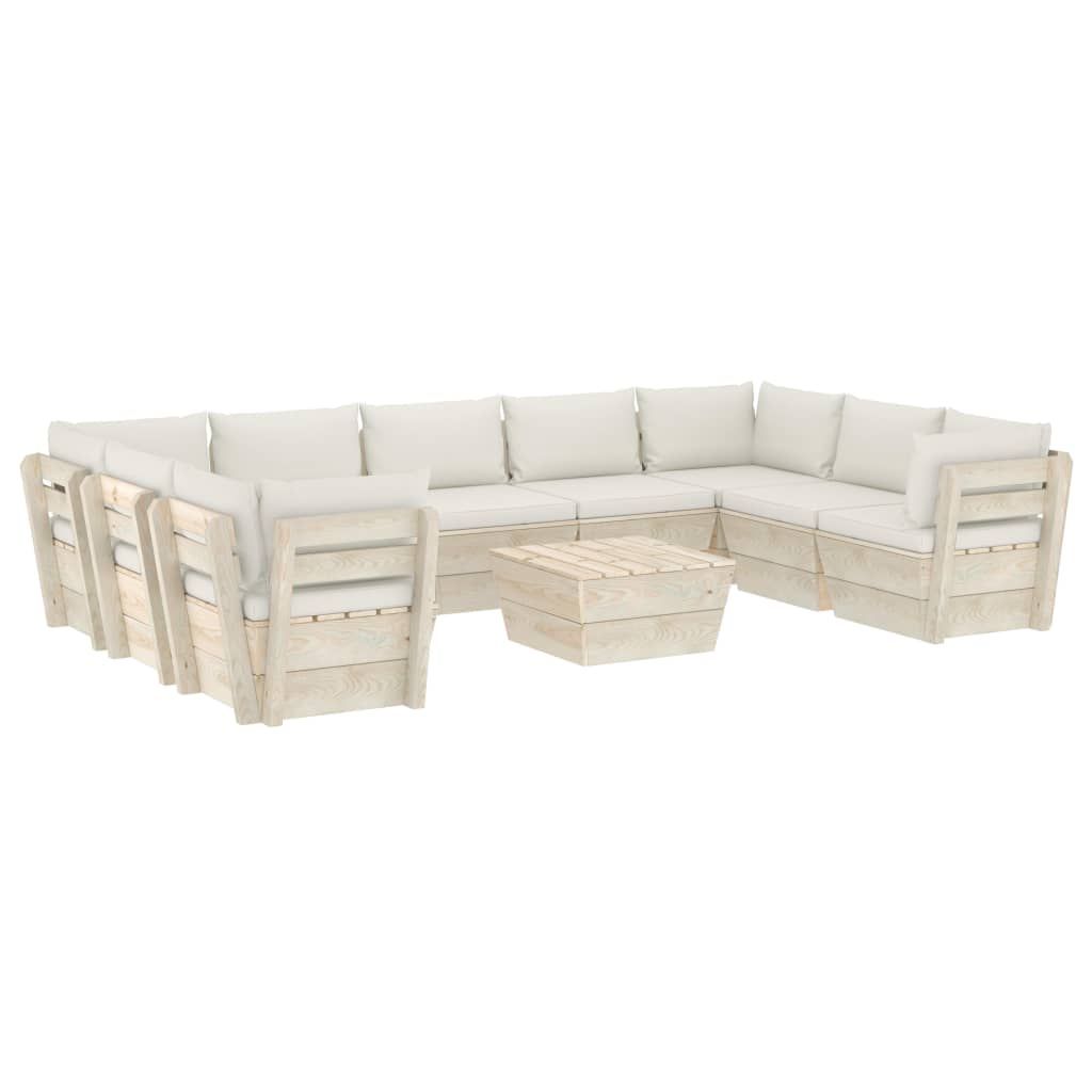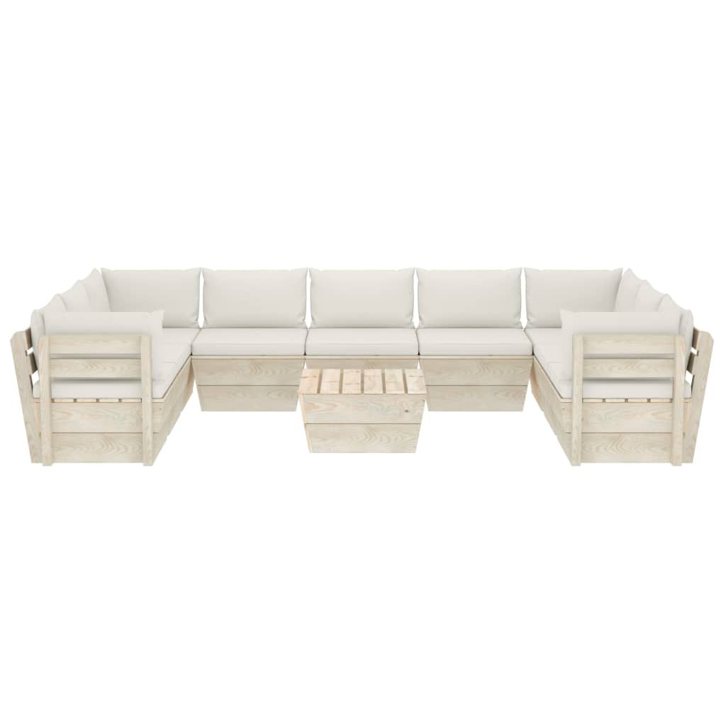 10-cz. ogrodowy zestaw wypoczynkowy z palet, poduszki, świerk