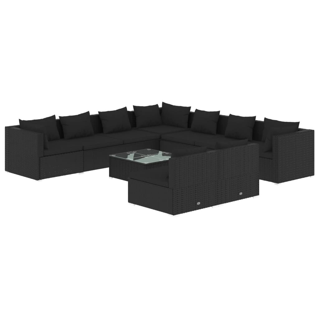 10-cz. zestaw mebli do ogrodu, poduszki, czarny rattan PE
