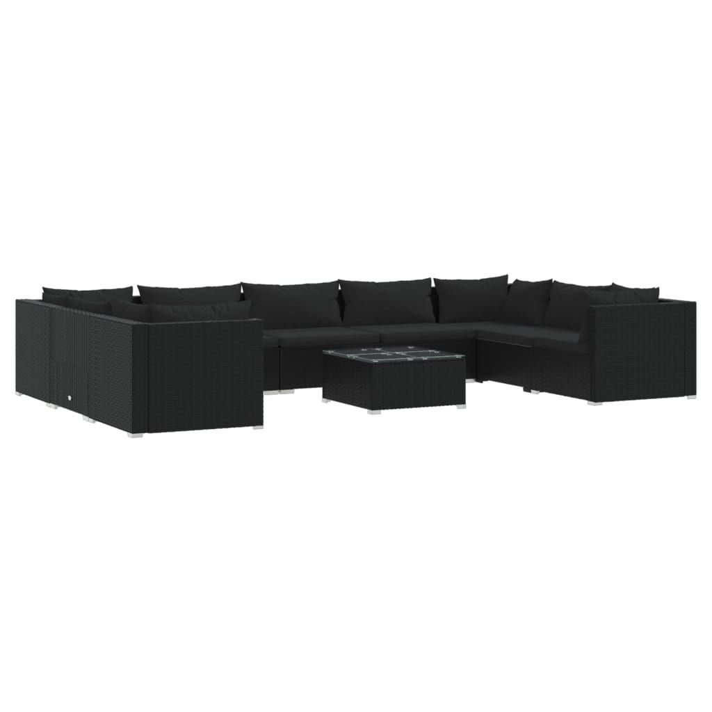 10-cz. zestaw mebli do ogrodu, poduszki, rattan PE, czarny