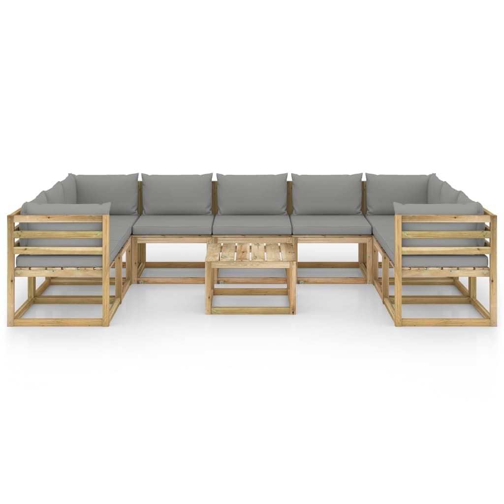 10-cz. zestaw mebli ogrodowych z poduszkami, impregnowana sosna