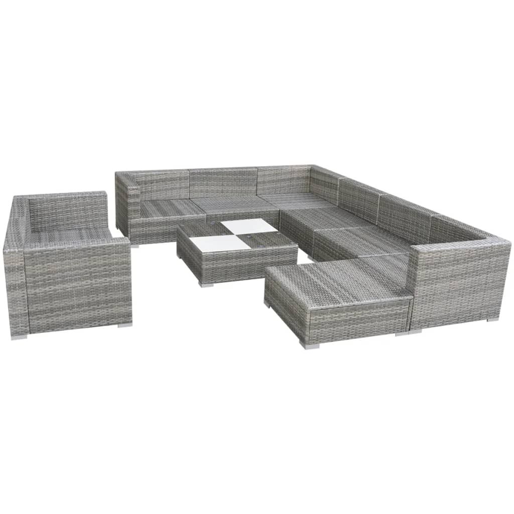 Zestaw rattanowych mebli ogrodowych łączy w sobie styl i funkcjonalność oraz z pewnością stanie się centralnym punktem w Twoim ogrodzie lub na tarasie. Jest on przeznaczony do całorocznego użytkowania na zewnątrz. Dzięki zastosowaniu odpornego na czynniki pogodowe oraz wodę rattanu PE zestaw ten jest łatwy do czyszczenia, wytrzymały i odpowiedni do codziennego użytkowania. Jego mocna, malowana proszkowo, stalowa rama zapewnia niezwykłą trwałość. Zestaw jest modułowy i lekki, można go więc swobodnie przestawiać i dopasować do każdego otoczenia. Grube, zdejmowane poduszki są bardzo wygodne. Przesyłka zawiera: 5 sof narożnikowych, 3 sofy środkowe, 1 pufa, 1 stolik kawowy, 9 poduszek na siedziska oraz 13 poduszek na oparcia. Uwaga: zalecamy przykrycie zestawu na czas deszczu, śniegu i mrozu.