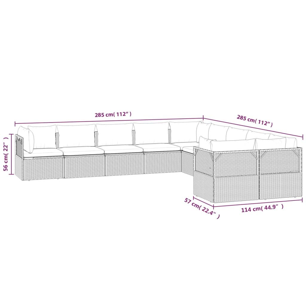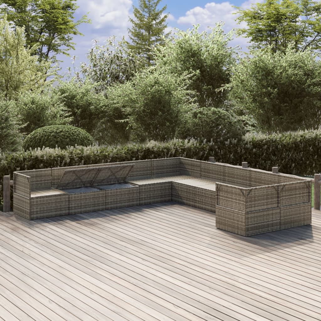 10-cz. zestaw wypoczynkowy do ogrodu, poduszki, szary rattan PE