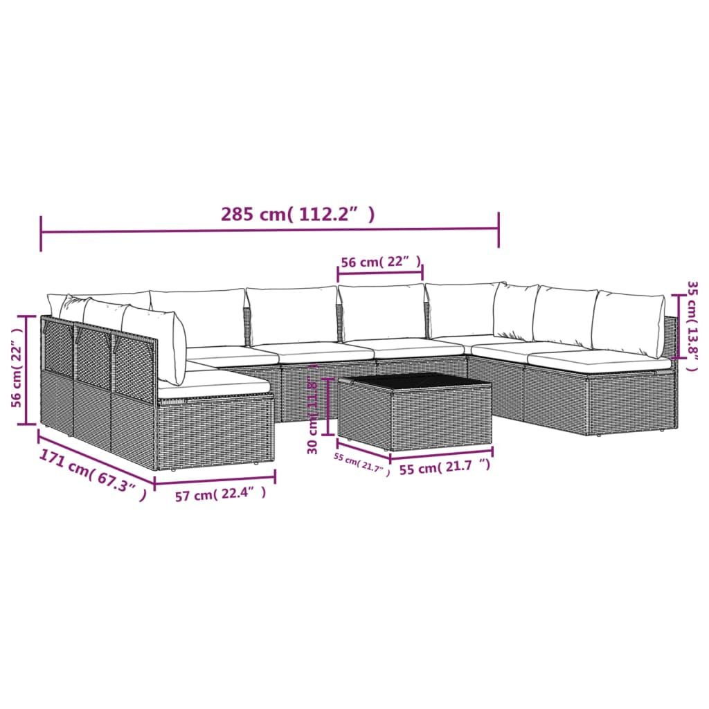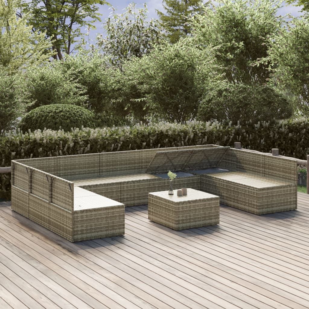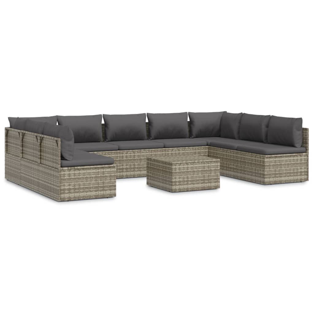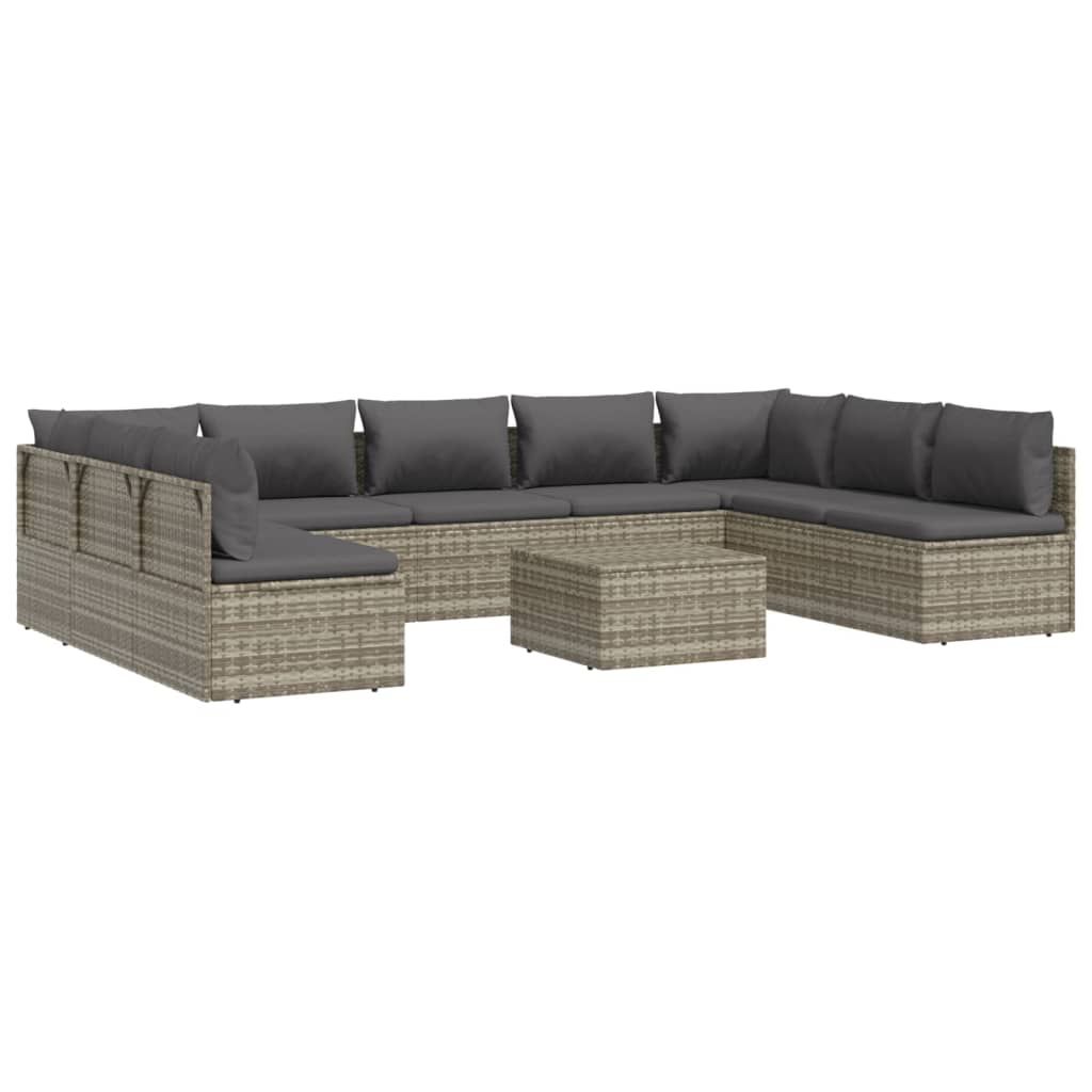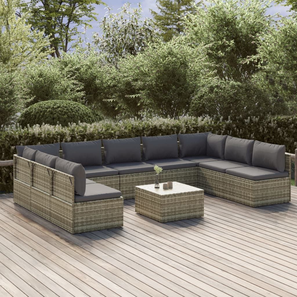 10-cz. zestaw wypoczynkowy do ogrodu, poduszki, szary rattan PE