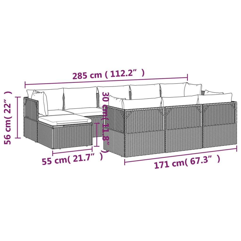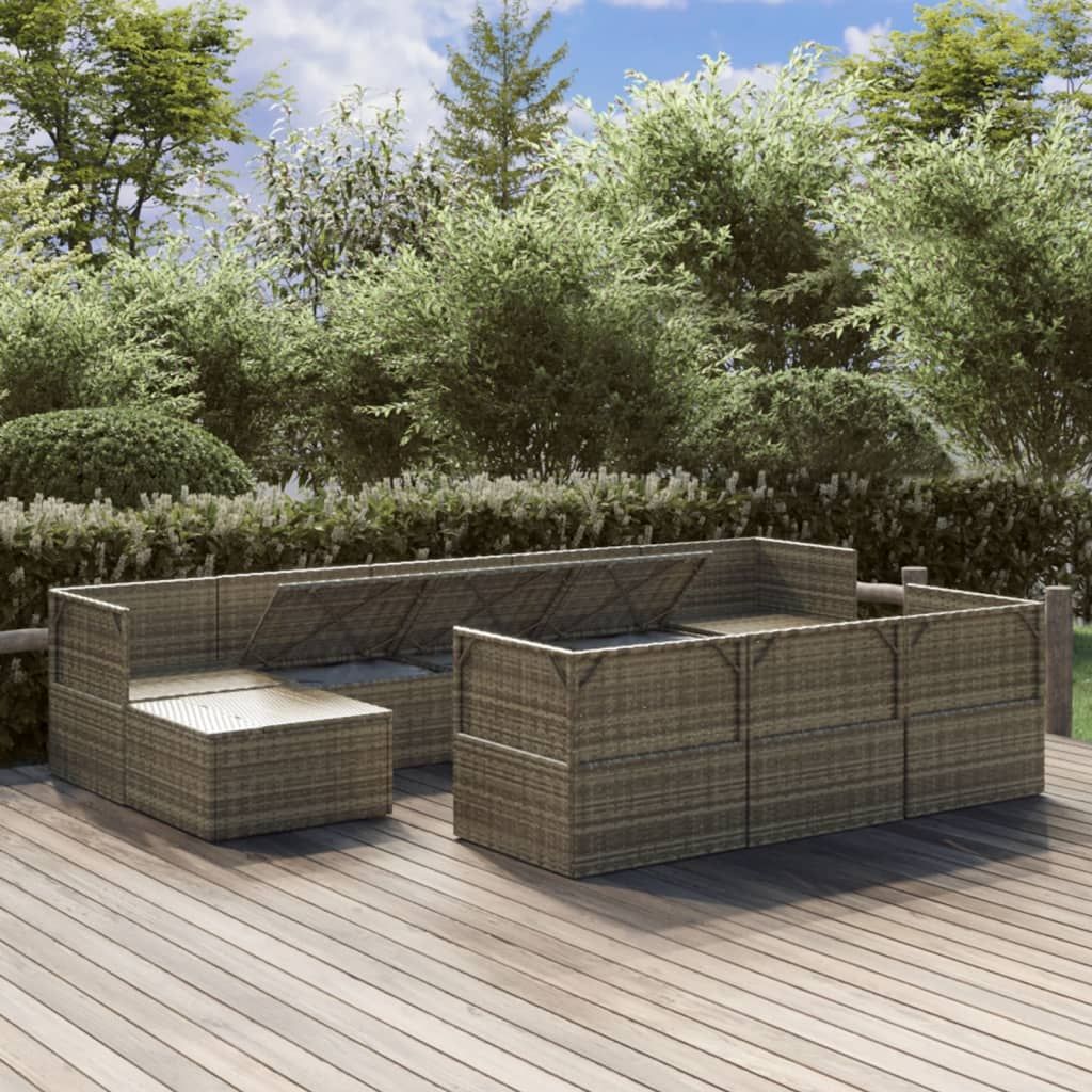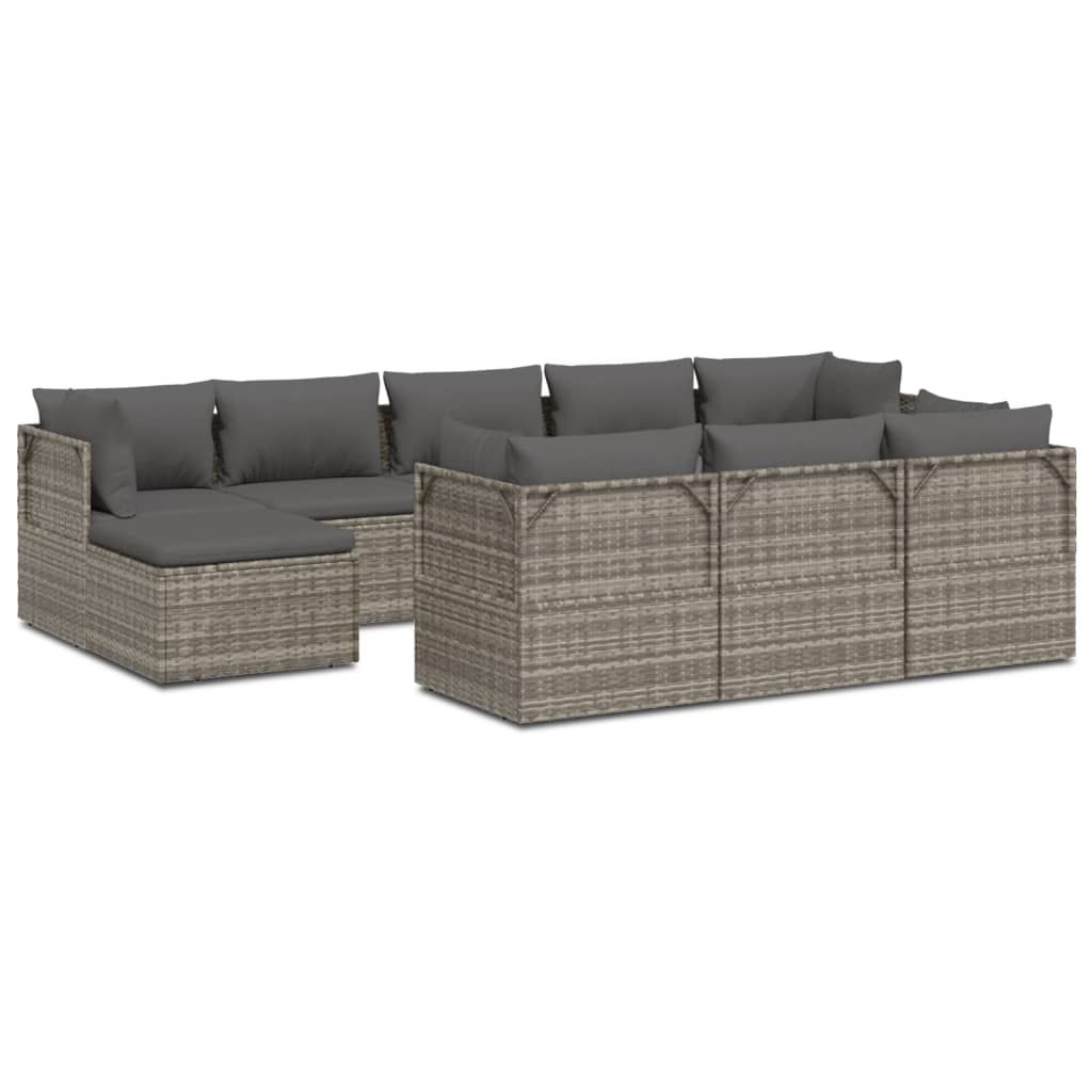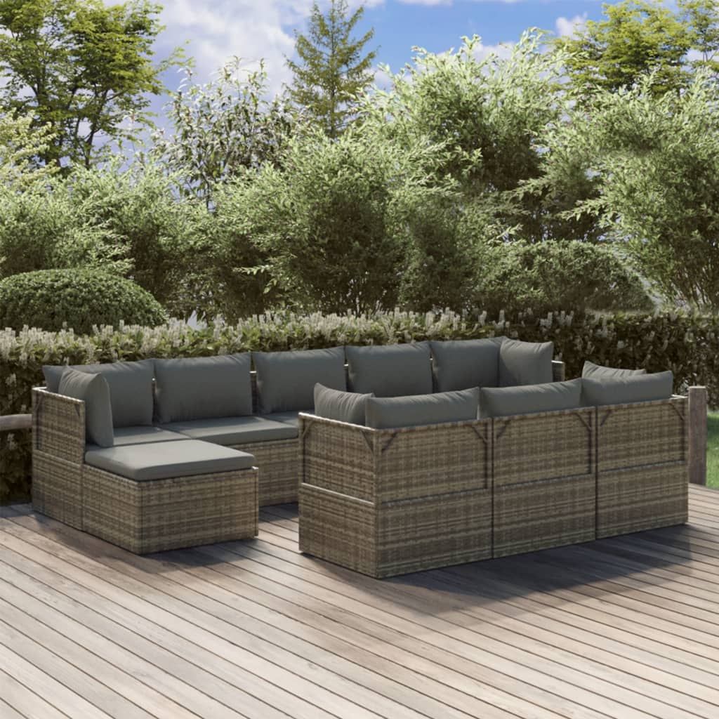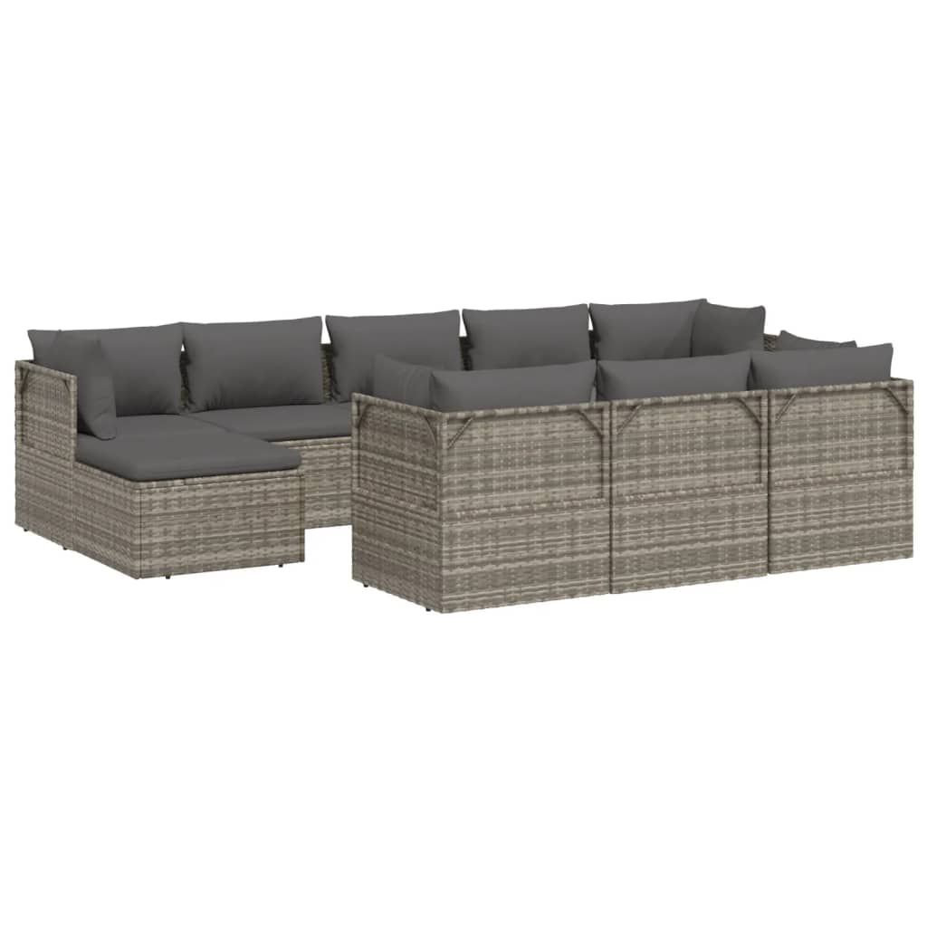 10-cz. zestaw wypoczynkowy do ogrodu, poduszki, szary rattan PE