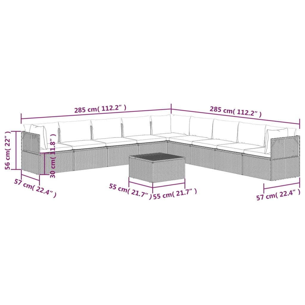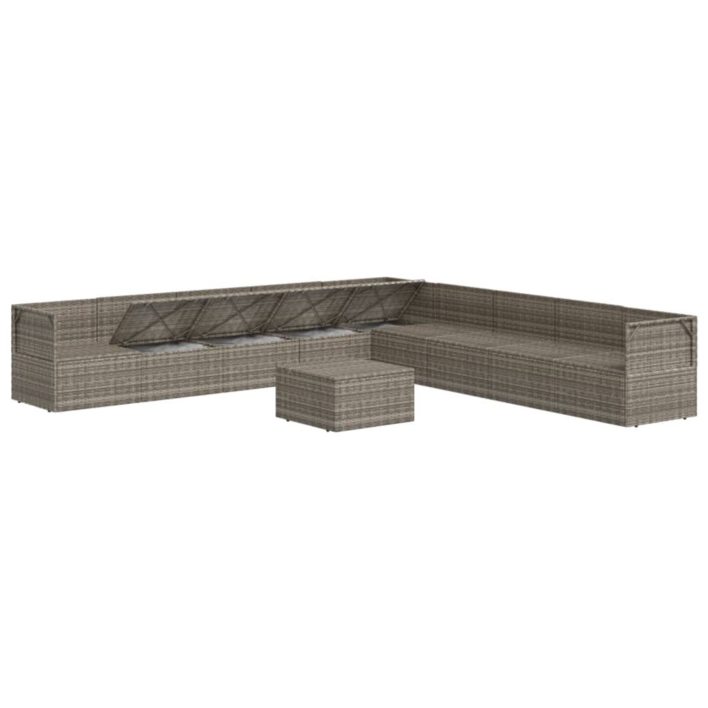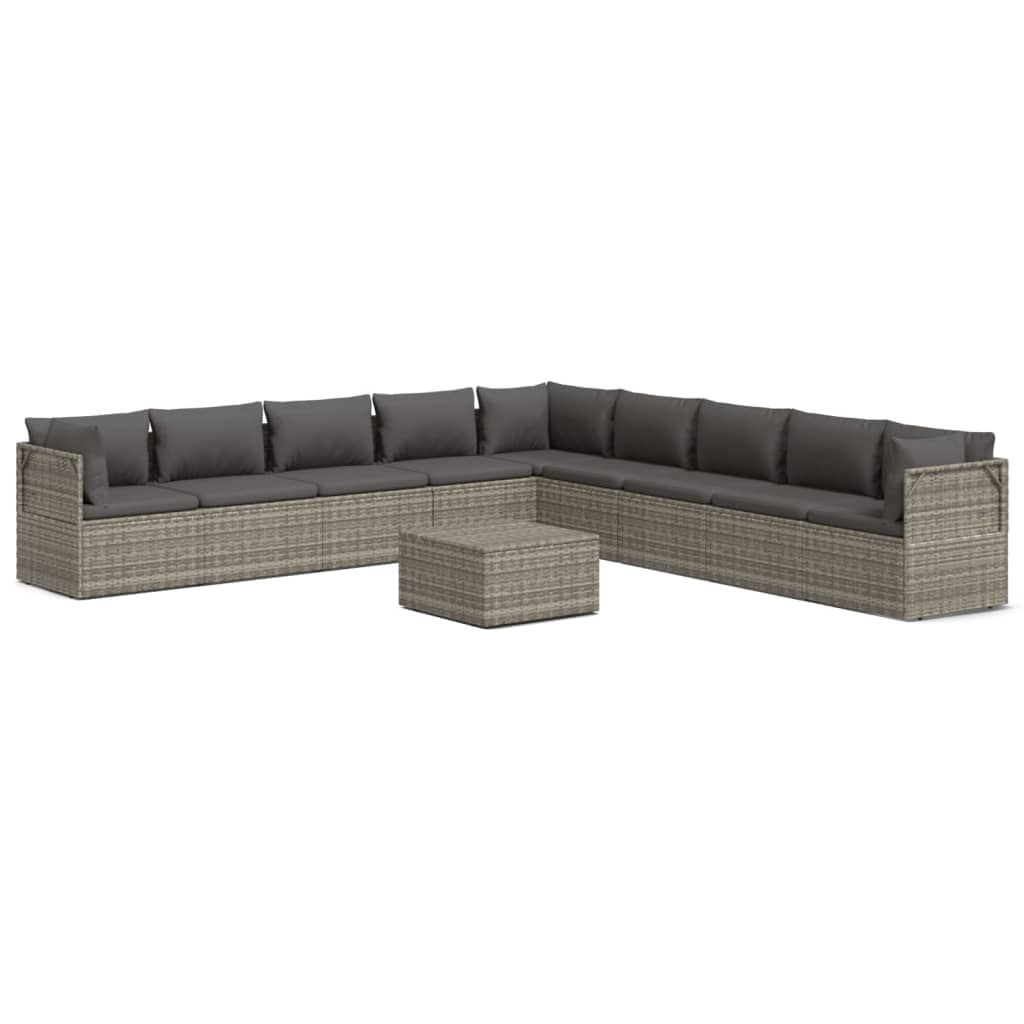 10-cz. zestaw wypoczynkowy do ogrodu, poduszki, szary rattan PE