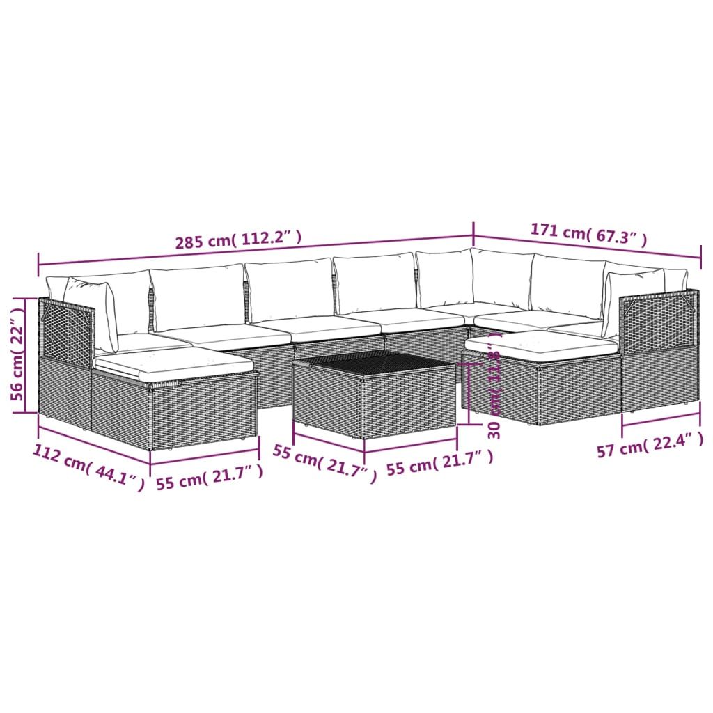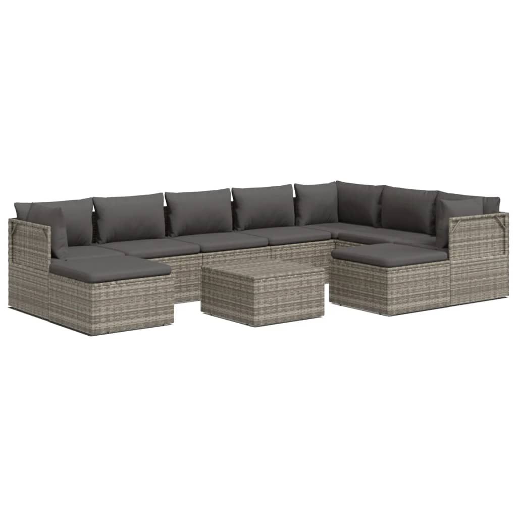 10-cz. zestaw wypoczynkowy do ogrodu, poduszki, szary rattan PE