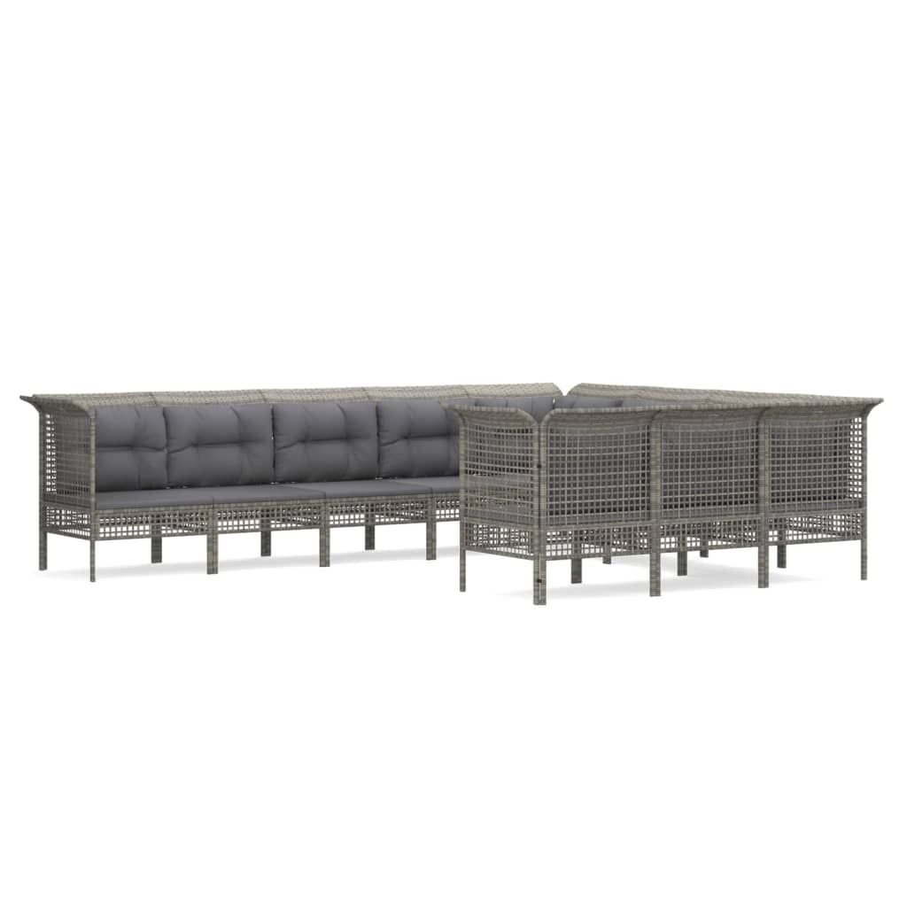 10-cz. zestaw wypoczynkowy do ogrodu, poduszki, szary rattan PE