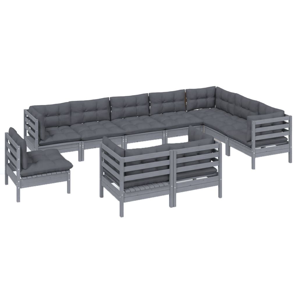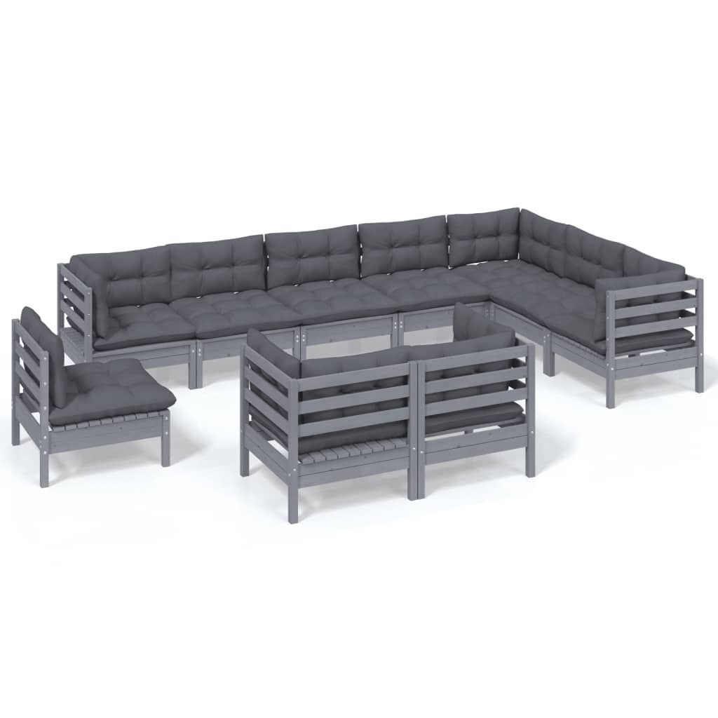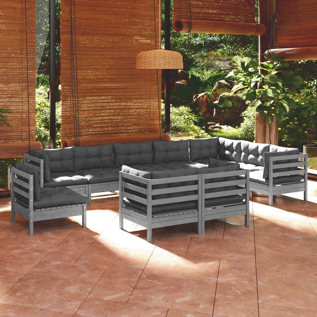 10-cz. zestaw wypoczynkowy do ogrodu, poduszki, szary sosnowy