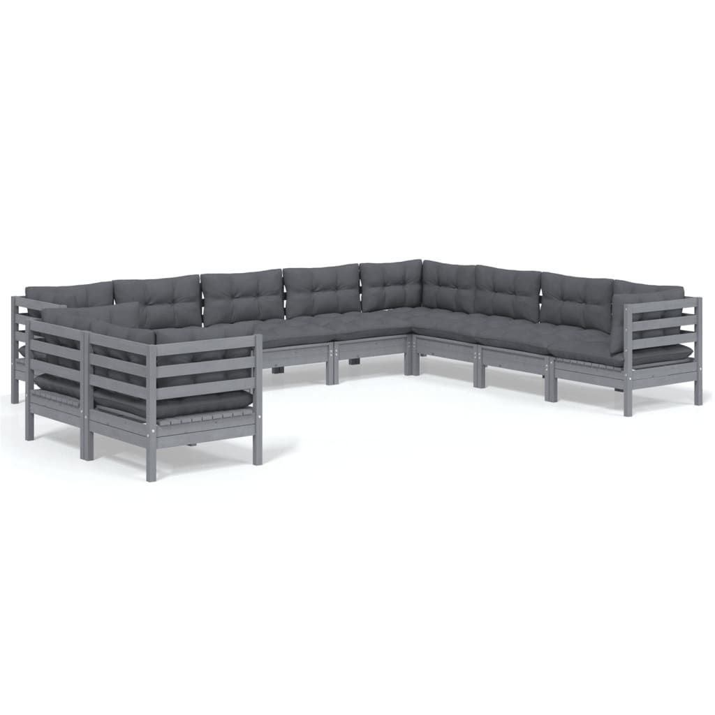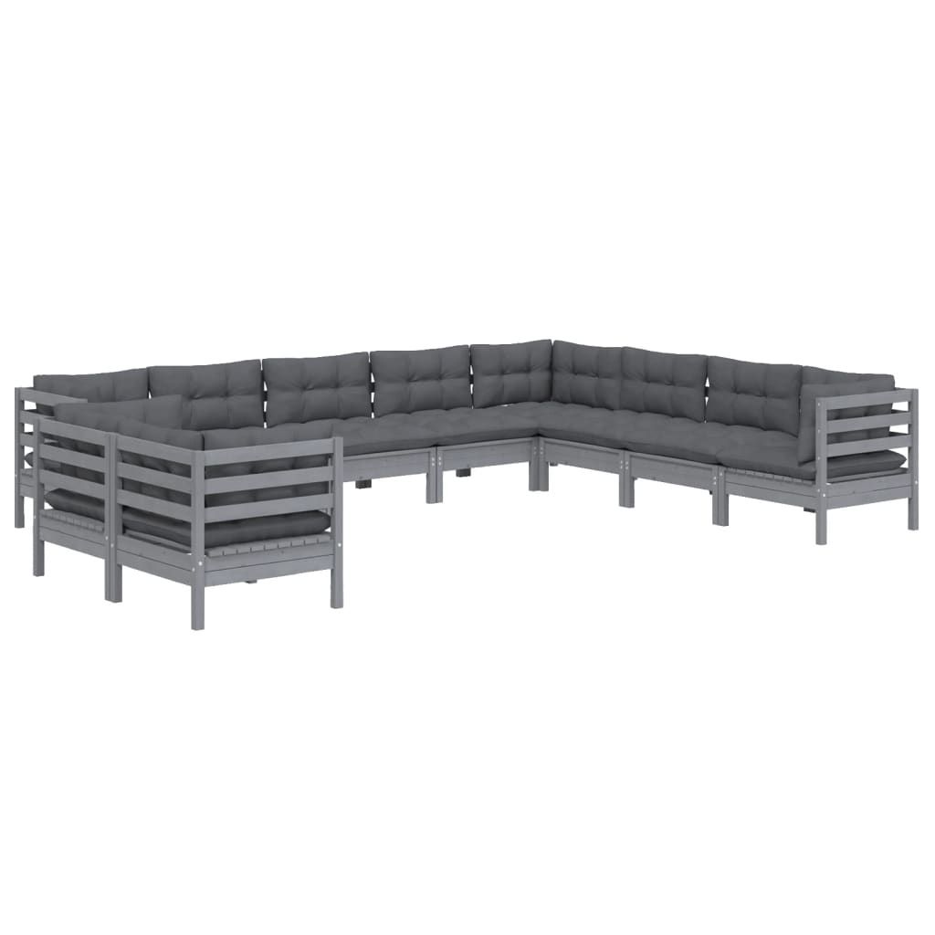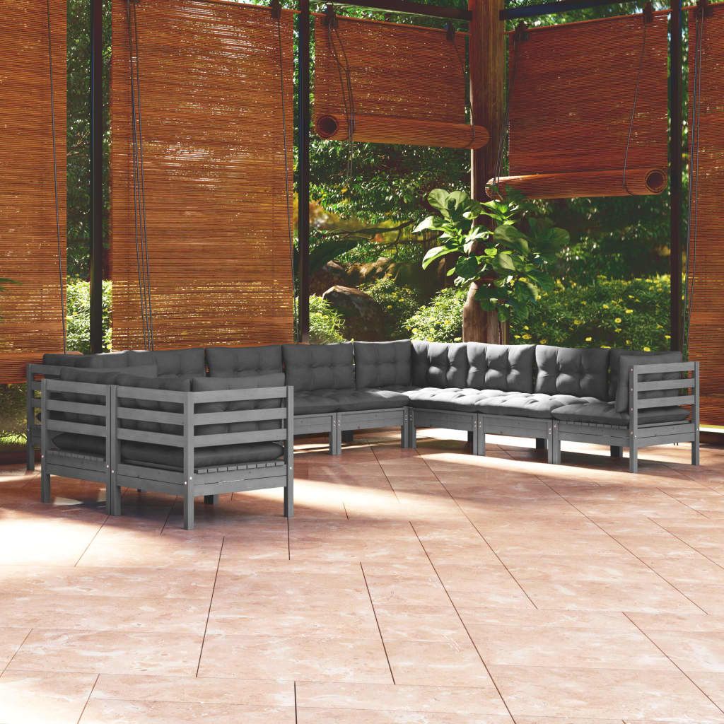 10-cz. zestaw wypoczynkowy do ogrodu, poduszki, szary, sosnowy