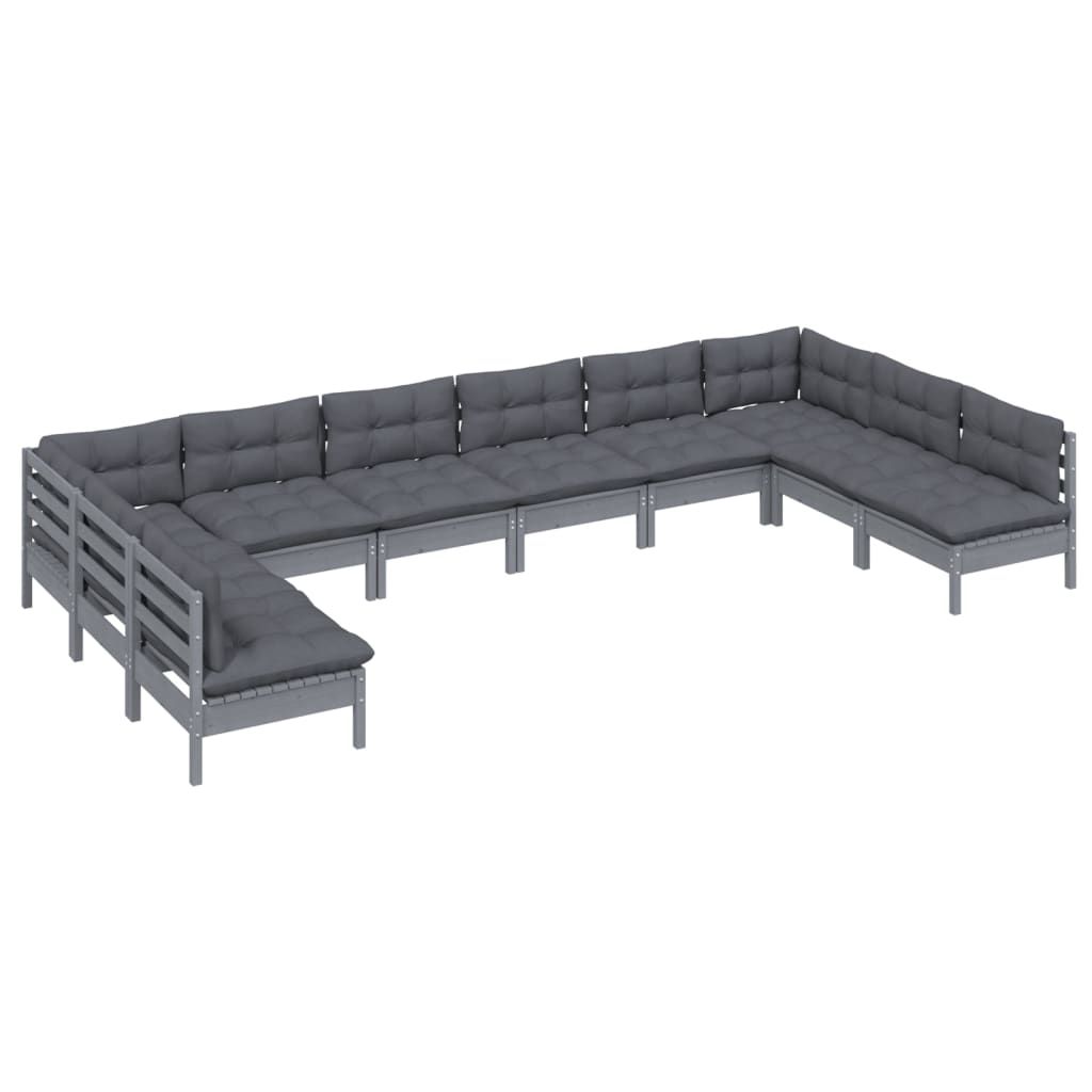 10-cz. zestaw wypoczynkowy do ogrodu, poduszki, szary, sosnowy