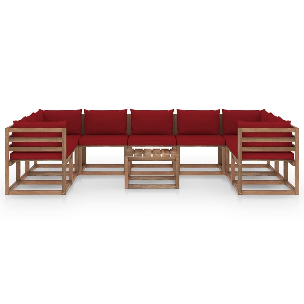 10-cz. zestaw wypoczynkowy do ogrodu, poduszki w kolorze wina