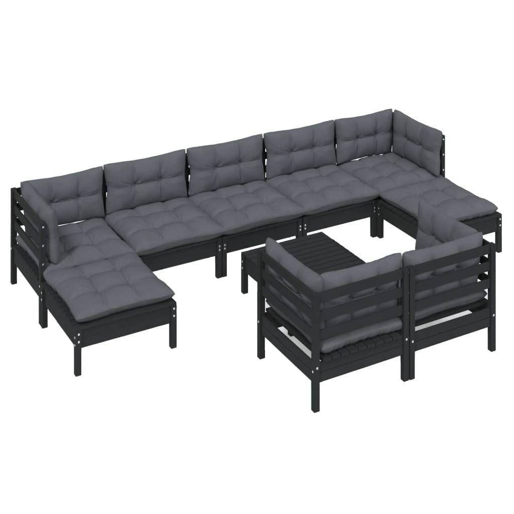 10-cz. zestaw wypoczynkowy do ogrodu, z poduszkami, czarny