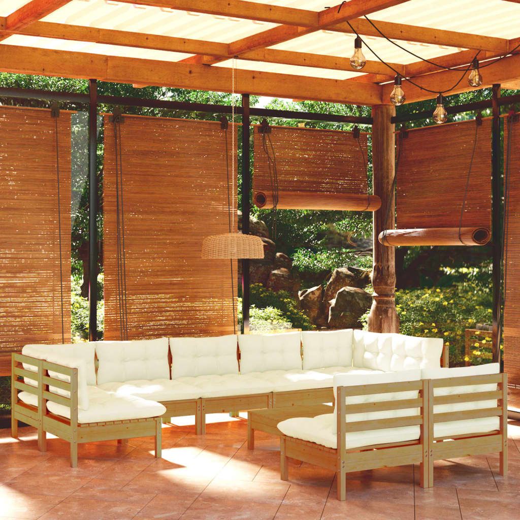 Opis produktu: Ten ogrodowy zestaw wypoczynkowy jest znakomitym wyborem na relaks i korzystanie z pogody, a także drzemkę czy rozmowę z rodziną lub przyjaciółmi. Zestaw wypoczynkowy do ogrodu wykonano z litego drewna sosnowego, dzięki czemu jest solidny i stabilny. Poduszki oferują większy komfort. Możesz zestawiać ten komplet z innymi modułami i tworzyć własne aranżacje mebli wypoczynkowych w ogrodzie! Uwaga: aby przedłużyć żywotność mebli ogrodowych, zalecamy zabezpieczenie ich wodoodpornym pokrowcem.
