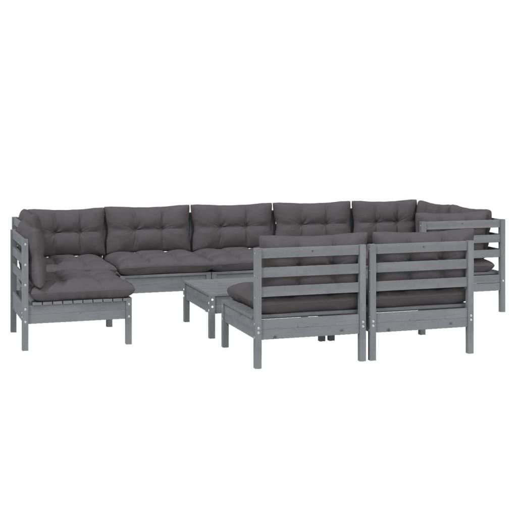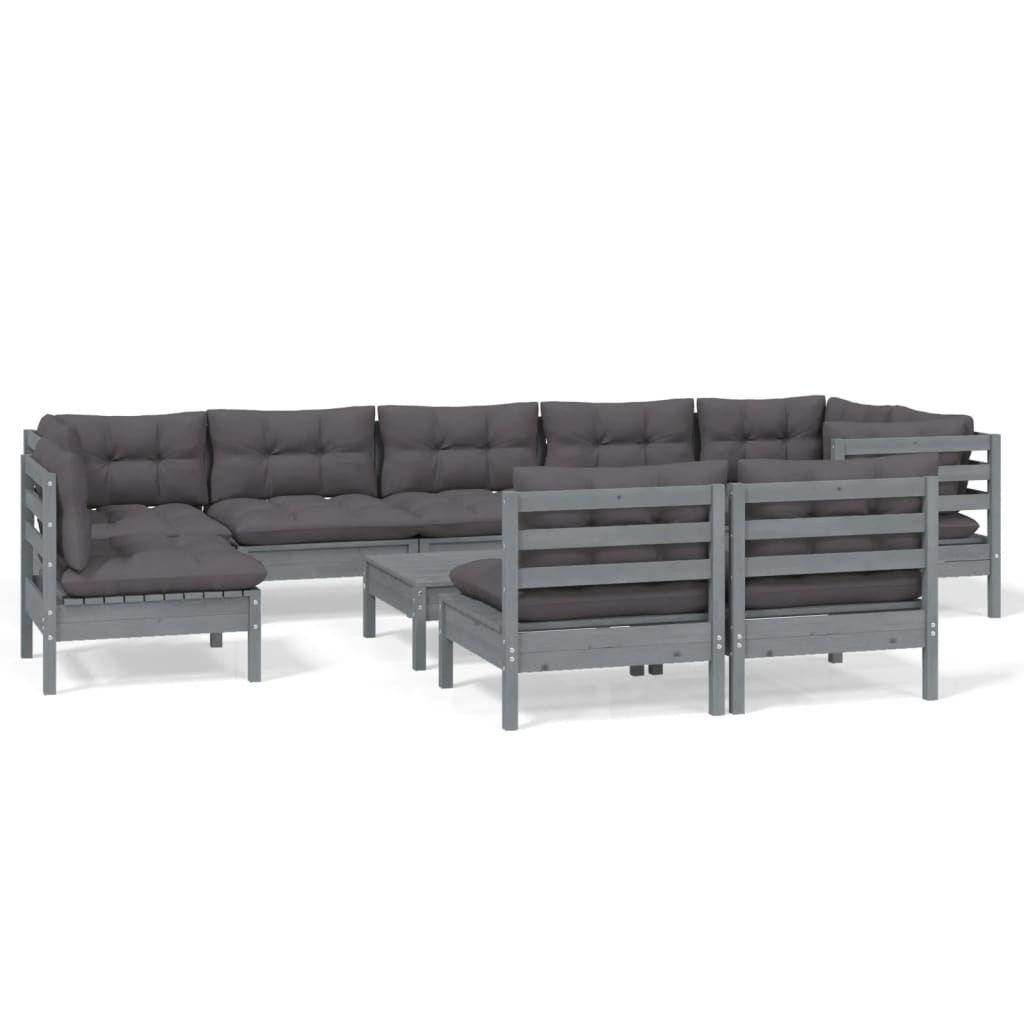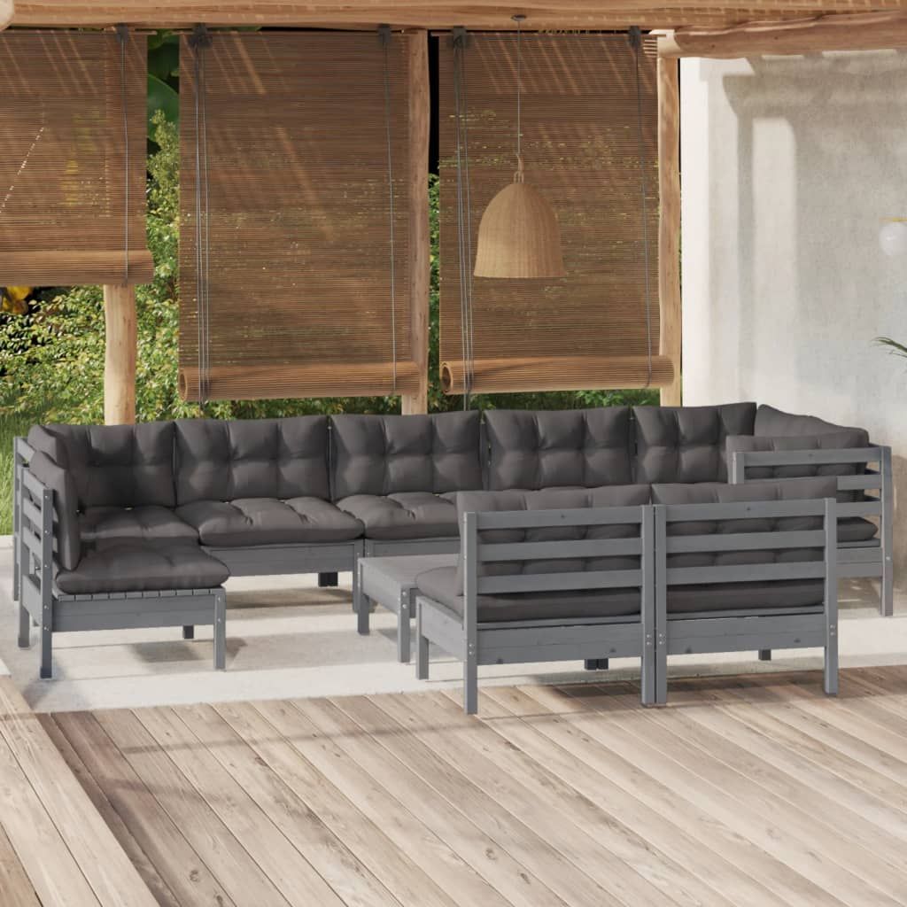 10-cz. zestaw wypoczynkowy do ogrodu, z poduszkami, szara sosna