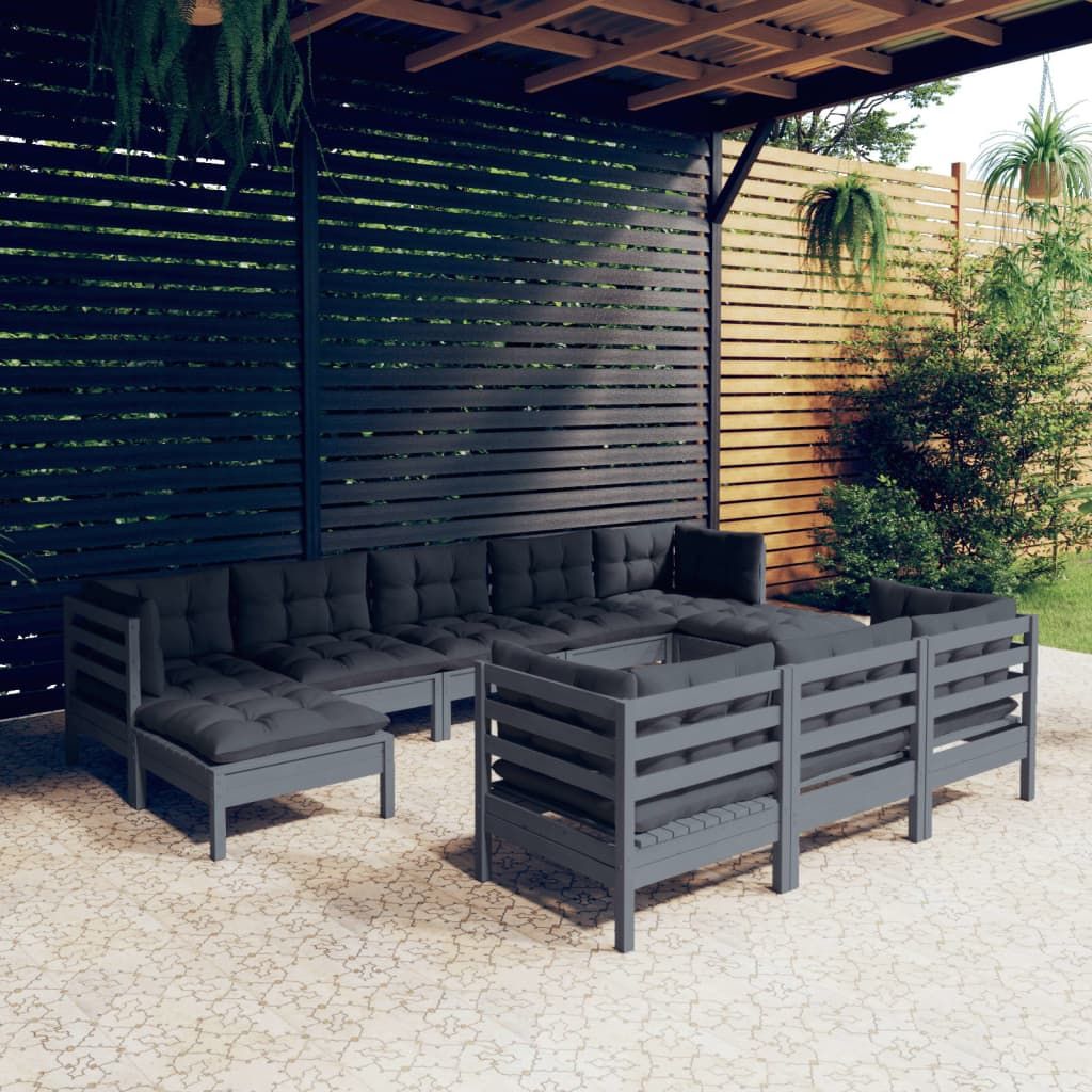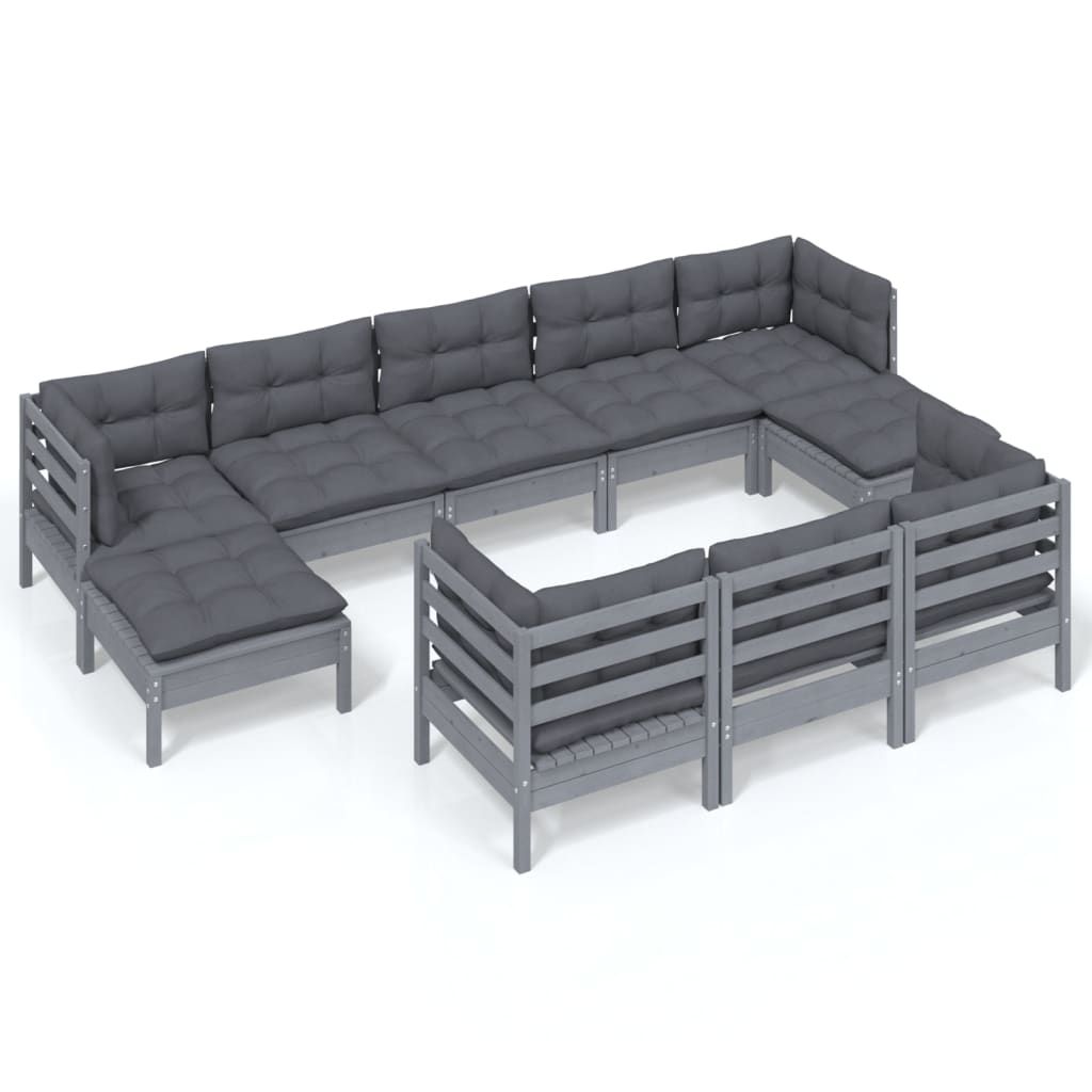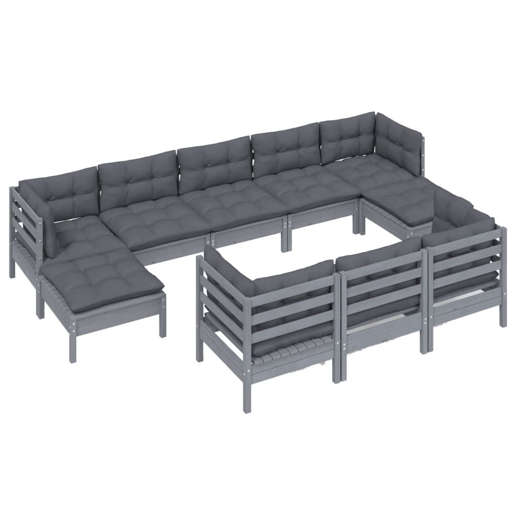 10-cz. zestaw wypoczynkowy do ogrodu, z poduszkami, szara sosna