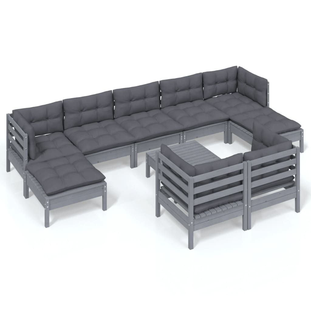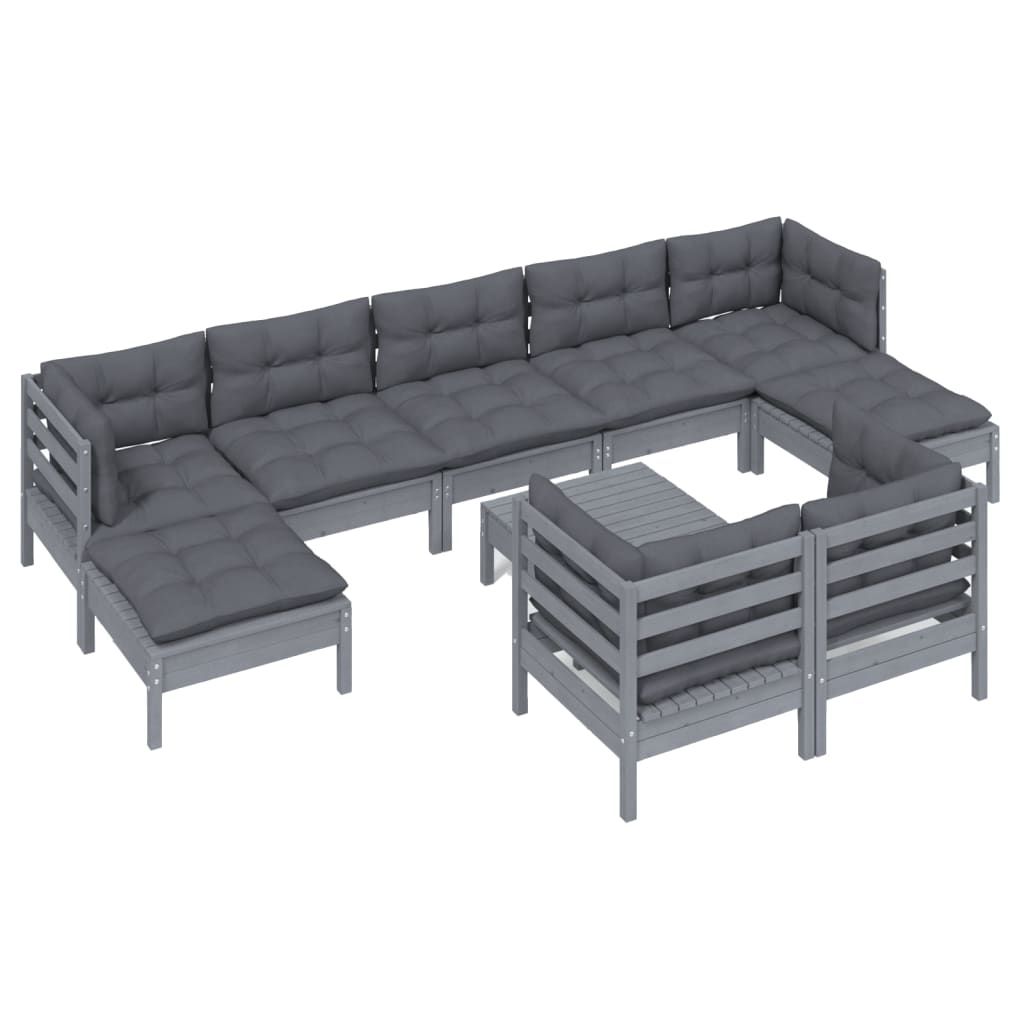 10-cz. zestaw wypoczynkowy do ogrodu, z poduszkami, szara sosna