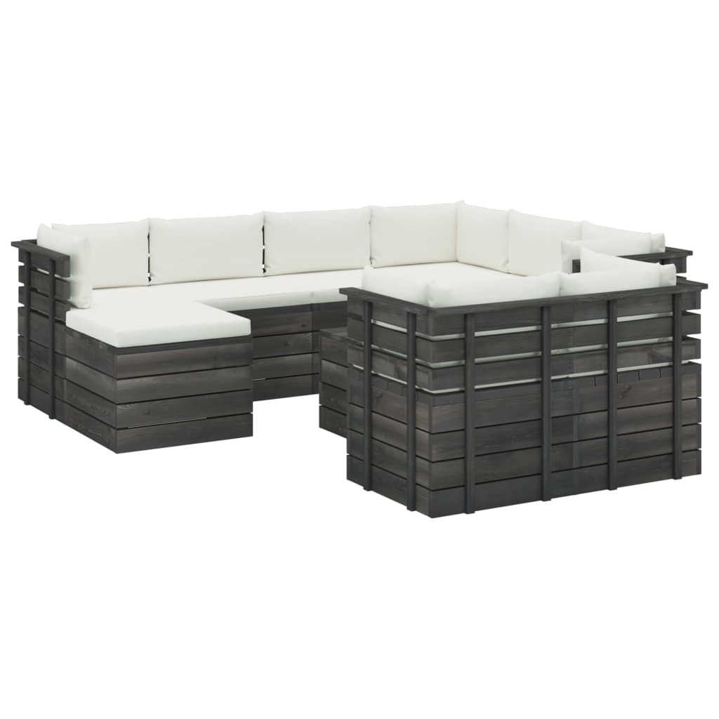 10-cz. zestaw wypoczynkowy z palet, z poduszkami, lita sosna