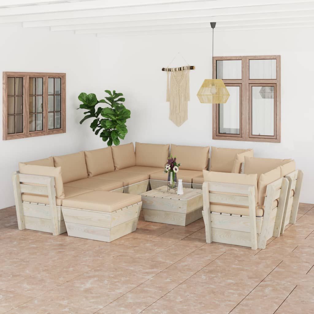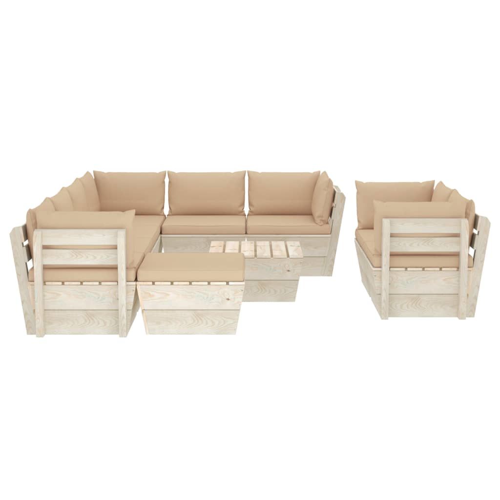 10-cz. zestaw wypoczynkowy z palet, z poduszkami, świerk