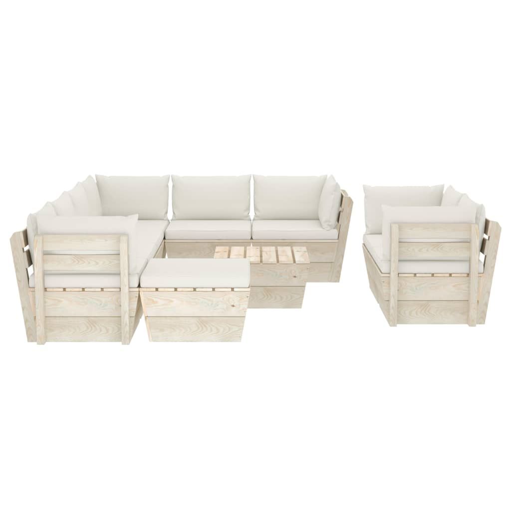 10-cz. zestaw wypoczynkowy z palet, z poduszkami, świerk
