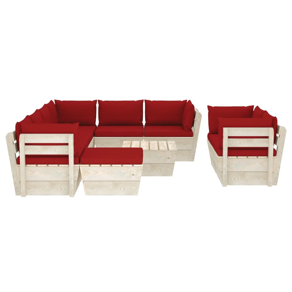 10-cz. zestaw wypoczynkowy z palet, z poduszkami, świerk