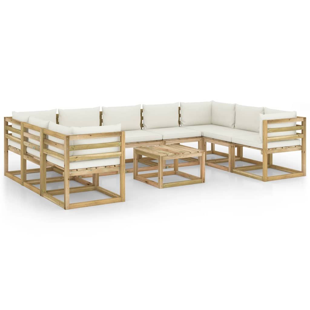 10-cz. zestaw wypoczynkowych z poduszkami, impregnowana sosna