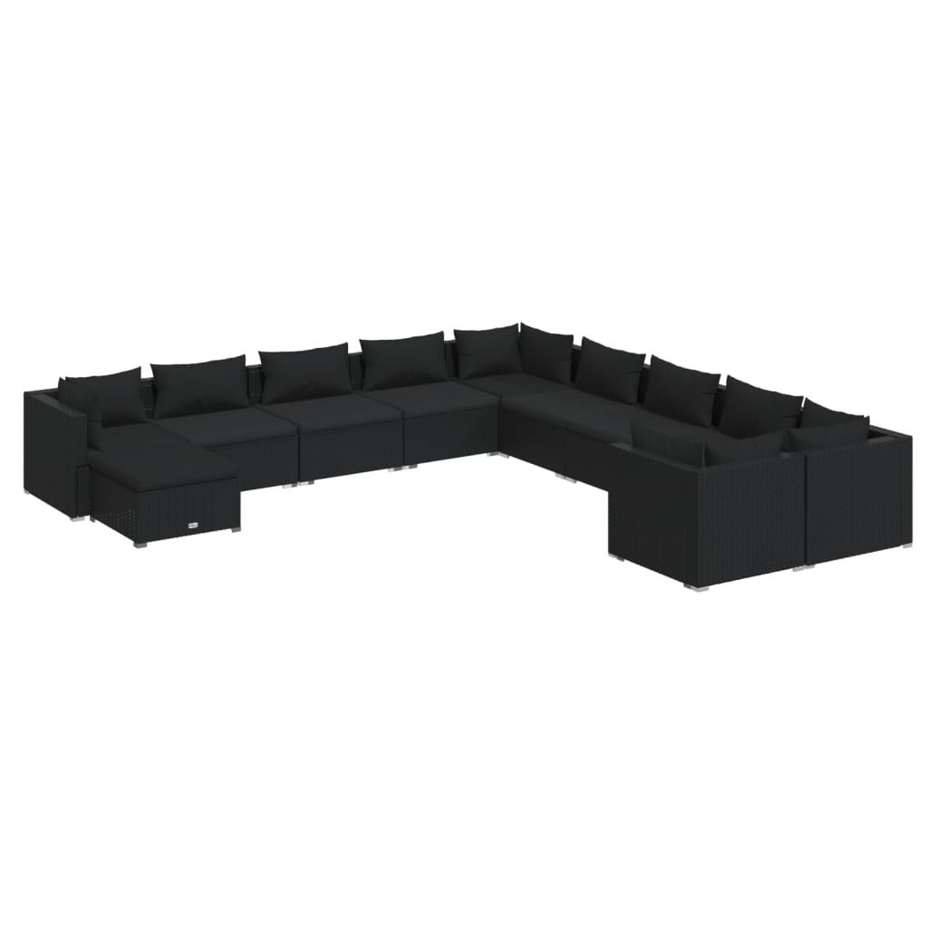 11-cz. zestaw mebli do ogrodu, poduszki, rattan PE, czarny