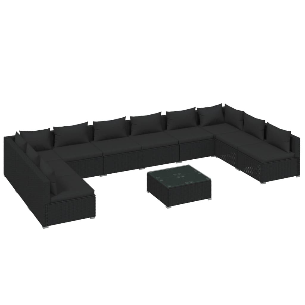 11-cz. zestaw mebli do ogrodu, poduszki, rattan PE, czarny