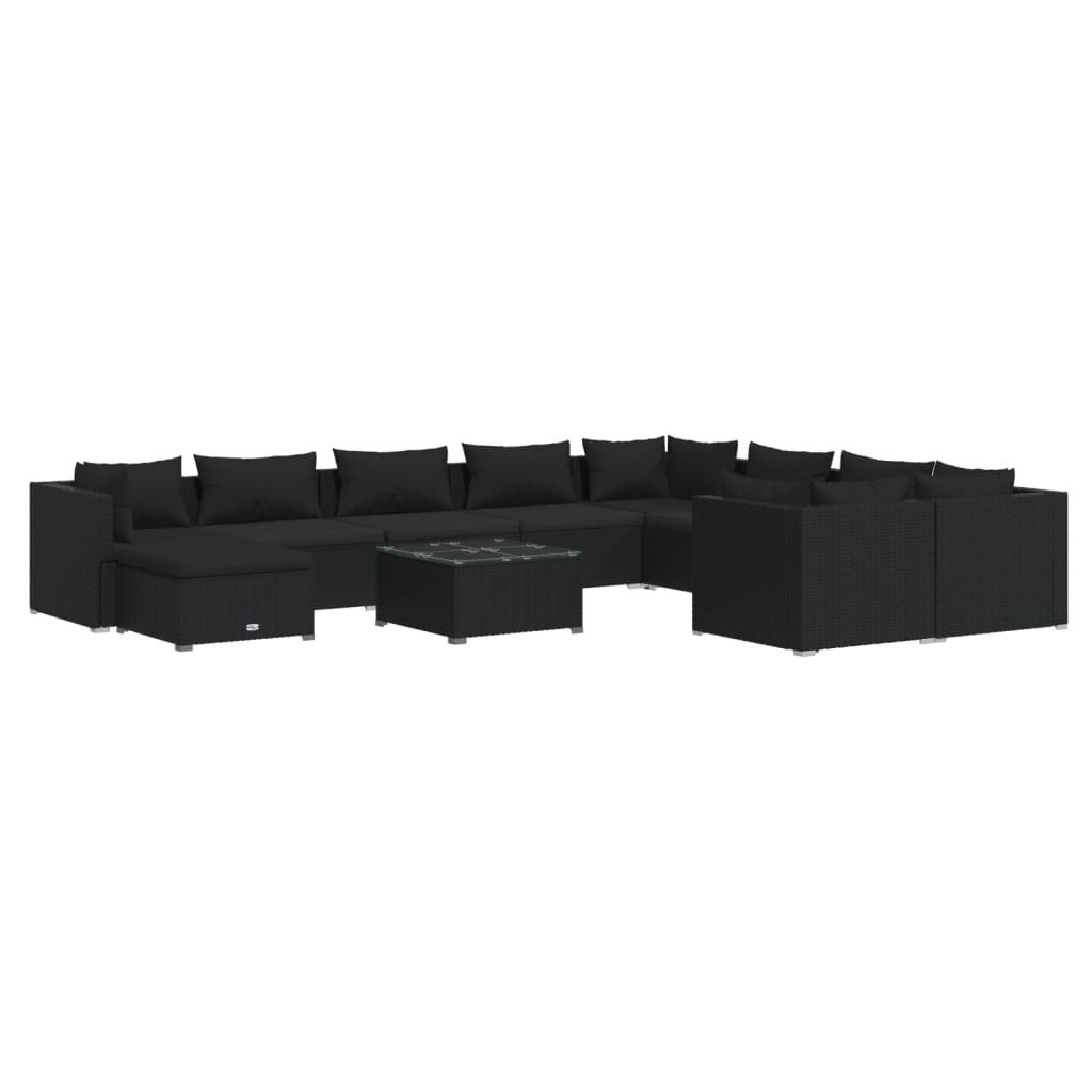 11-cz. zestaw mebli do ogrodu, poduszki, rattan PE, czarny