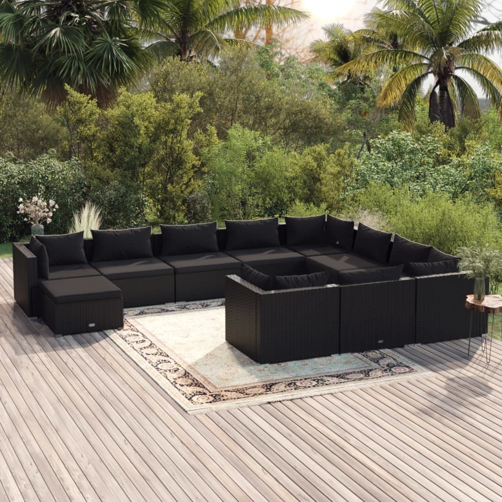 11-cz. zestaw mebli do ogrodu, poduszki, rattan PE, czarny