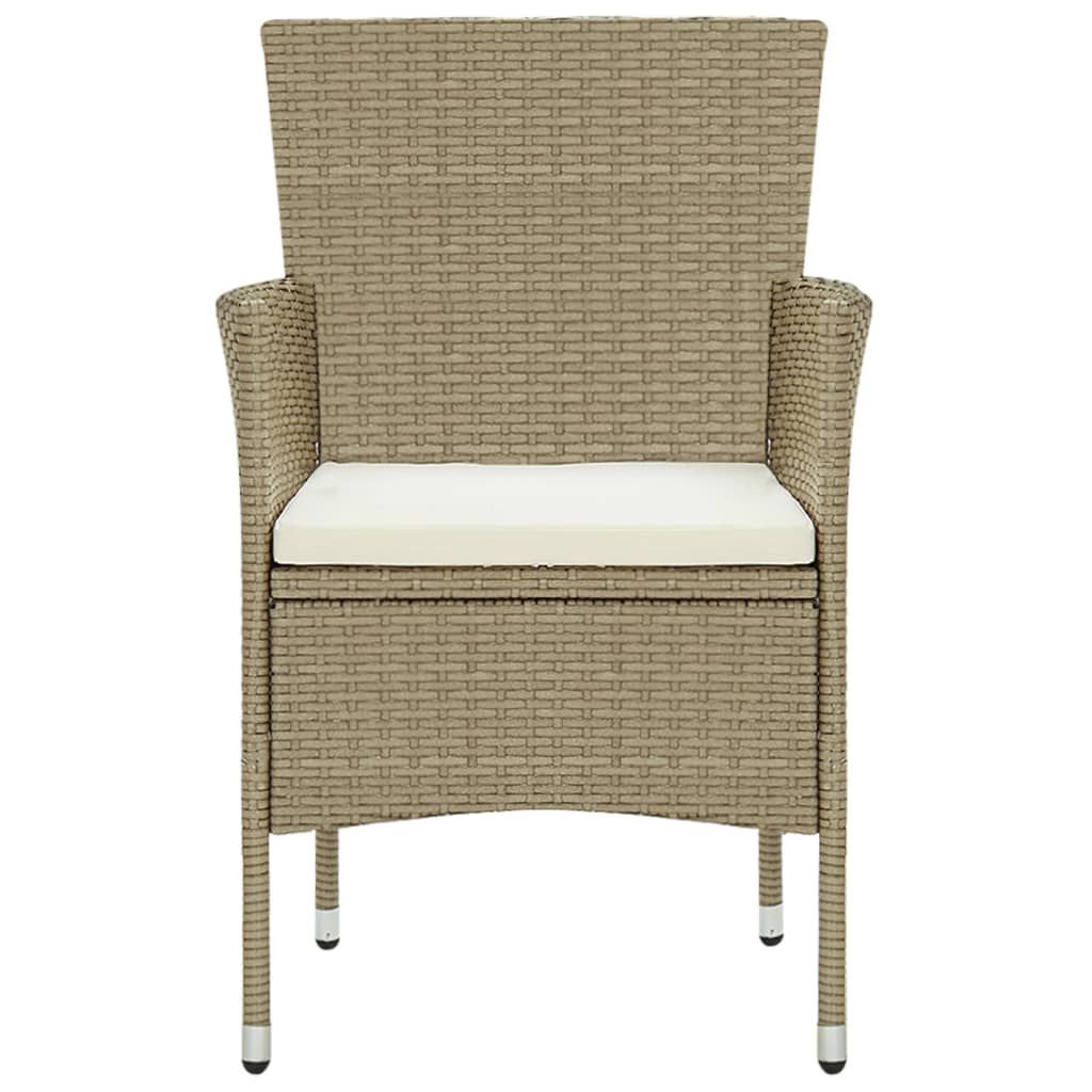 Ciesz się przyjemnym posiłkiem lub popołudniową herbatą w swojej przestrzeni na świeżym powietrzu za sprawą tego zestawu mebli ogrodowych! Charakteryzuje się on eleganckim designem i stanie się głównym punktem w Twoim ogrodzie lub patio! Najwyższej jakości materiał: mocne, stalowe ramy, owinięte odpornym na czynniki pogodowe, ręcznie plecionym polirattanem, czynią ten komplet mebli odpornym na rdzę i pleśń. Dzięki temu zapewni Ci on wiele lat komfortowego relaksu.Mocna i stabilna konstrukcja: stalowa rama zapewnia solidność i stabilność.Wygodne krzesła: zaprojektowane z zaokrąglonym oparciem i podłokietnikami krzesło do ogrodu ma bardziej ergonomiczny kształt, zapewniający maksymalny komfort. Dołączone poduszki oferują większą wygodę, a ich poszewki z zamkami można z łatwością zdjąć i wyprać. Uwaga:Aby przedłużyć żywotność mebli ogrodowych, zalecamy zabezpieczenie ich wodoodpornym pokrowcem.