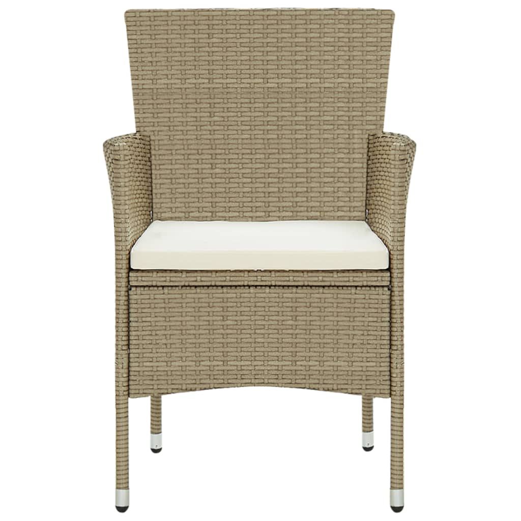 Opis produktu: Ciesz się przyjemnym posiłkiem lub popołudniową herbatą w swojej przestrzeni na świeżym powietrzu za sprawą tego zestawu mebli ogrodowych! Charakteryzuje się on eleganckim designem i stanie się głównym punktem w Twoim ogrodzie lub patio! Najwyższej jakości materiał: mocne, stalowe ramy, owinięte odpornym na czynniki pogodowe, ręcznie plecionym polirattanem, czynią ten komplet mebli odpornym na rdzę i pleśń. Dzięki temu zapewni Ci on wiele lat komfortowego relaksu.Mocna i stabilna konstrukcja: stalowa rama zapewnia solidność i stabilność.Wygodne krzesła: zaprojektowane z zaokrąglonym oparciem i podłokietnikami krzesło do ogrodu ma bardziej ergonomiczny kształt, zapewniający maksymalny komfort. Dołączone poduszki oferują większą wygodę, a ich poszewki z zamkami można z łatwością zdjąć i wyprać. Uwaga:Aby przedłużyć żywotność mebli ogrodowych, zalecamy zabezpieczenie ich wodoodpornym pokrowcem.