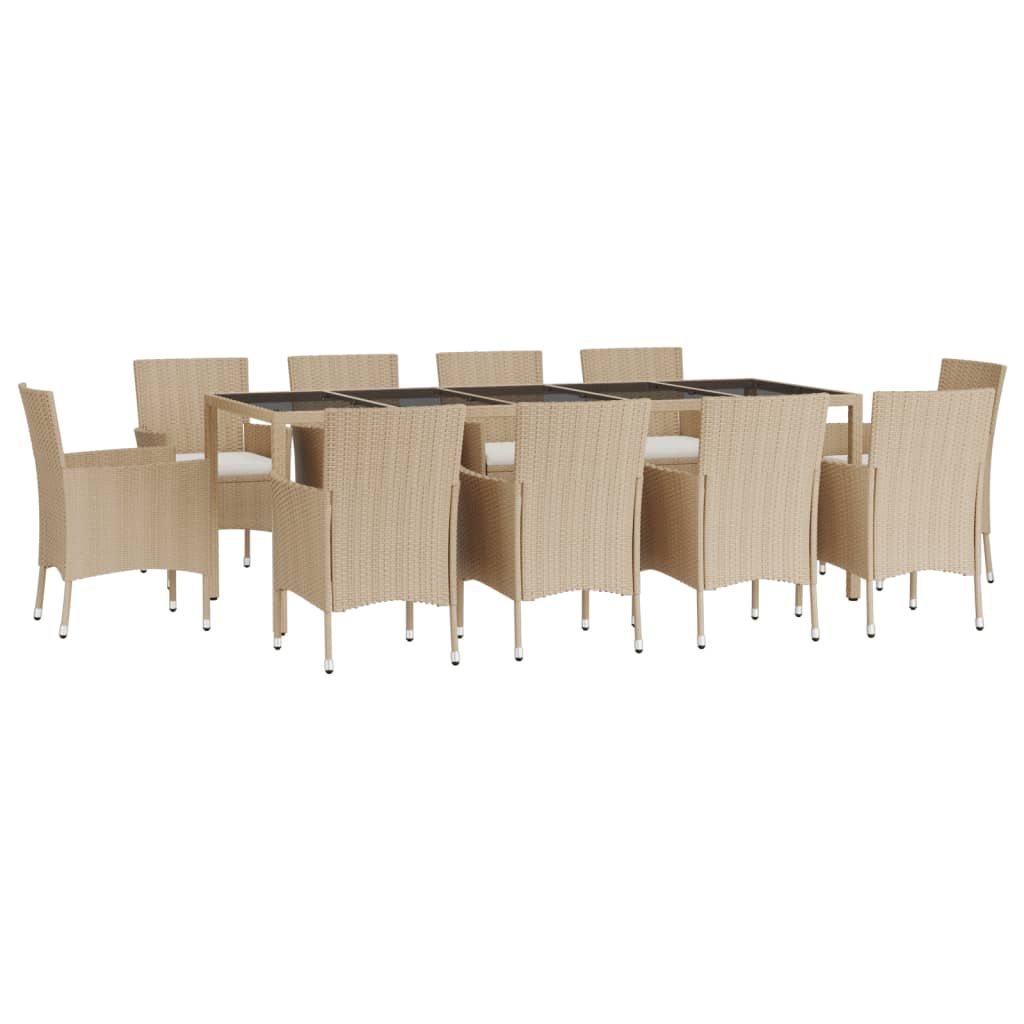 11-cz. zestaw mebli ogrodowych z poduszkami, beżowy, polirattan