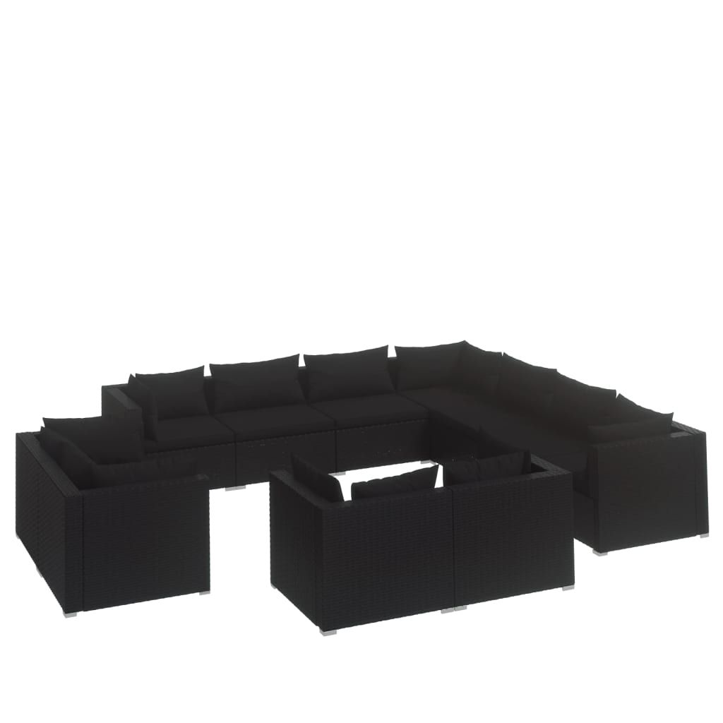 11-cz. zestaw wypoczynkowy do ogrodu, poduszki czarny rattan PE