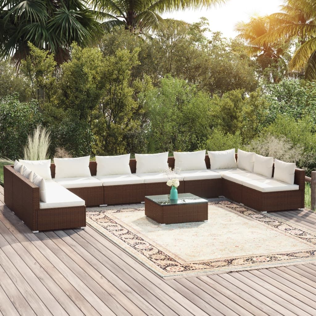 11-cz. zestaw wypoczynkowy do ogrodu, poduszki, rattan PE, brąz