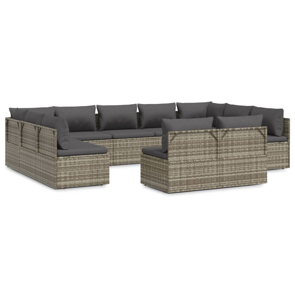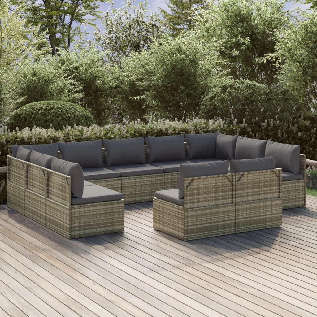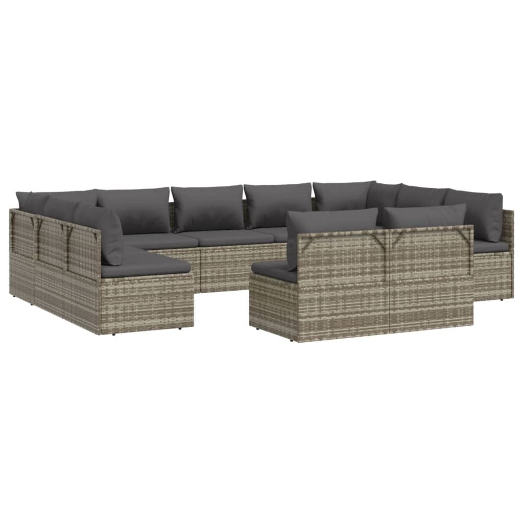 11-cz. zestaw wypoczynkowy do ogrodu, poduszki, szary rattan PE