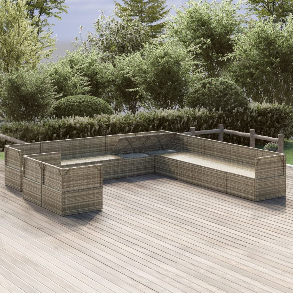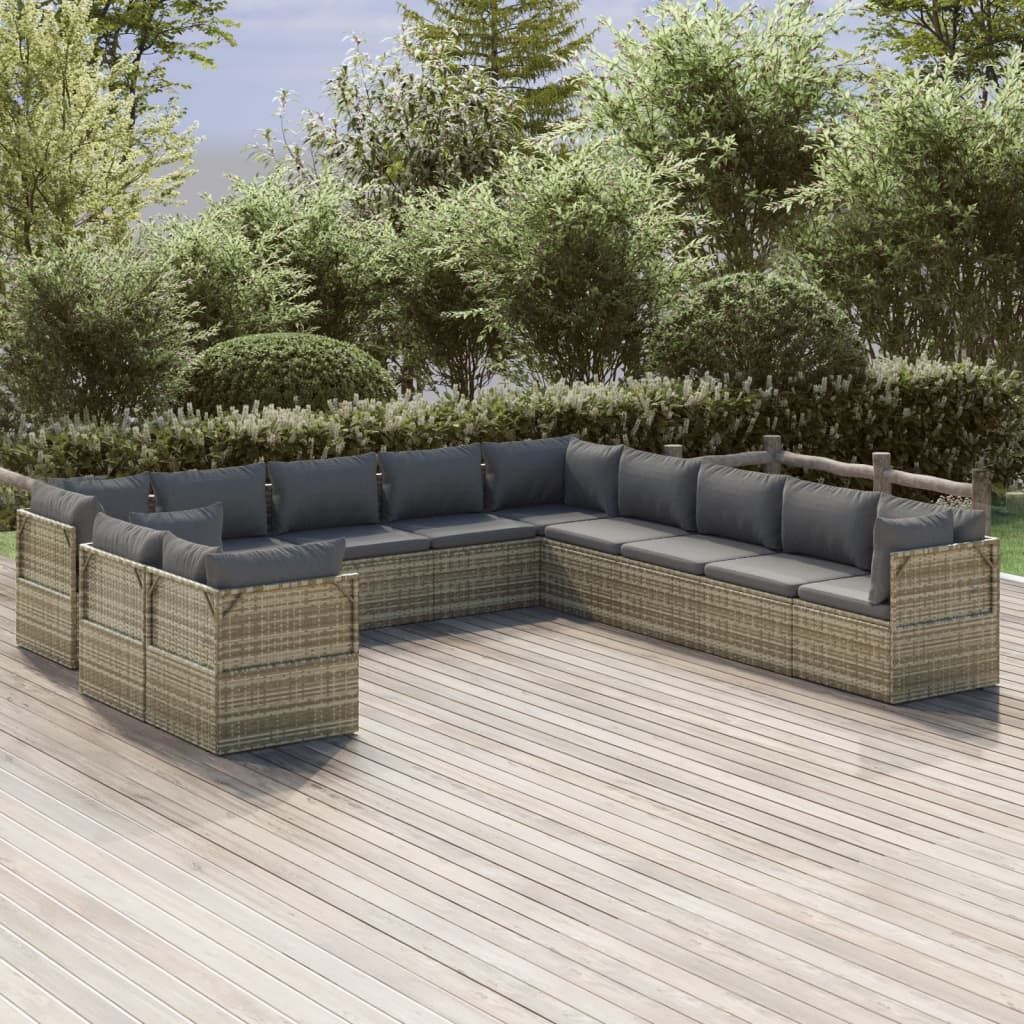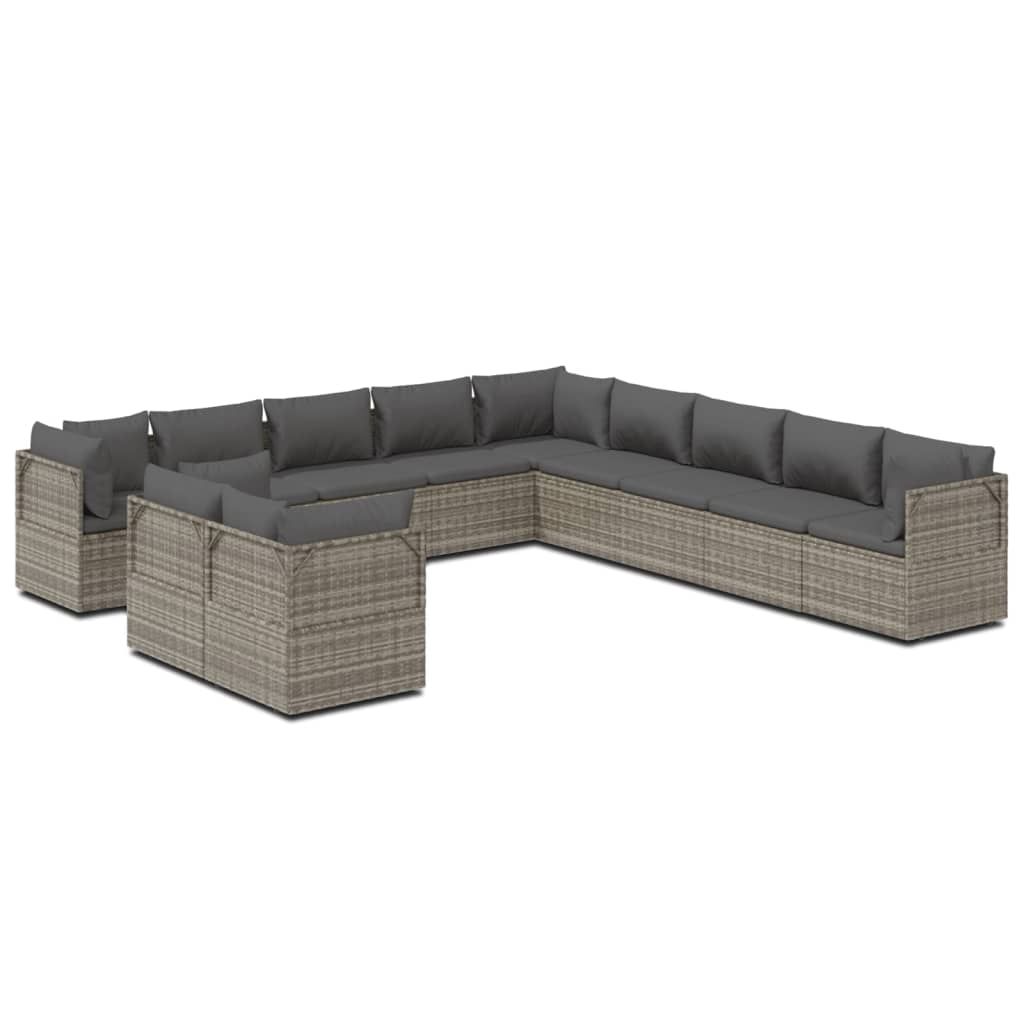 11-cz. zestaw wypoczynkowy do ogrodu, poduszki, szary rattan PE