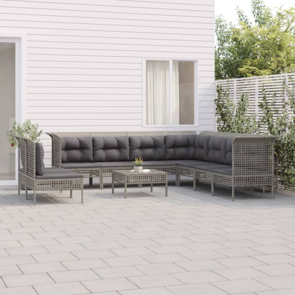 11-cz. zestaw wypoczynkowy do ogrodu, poduszki, szary rattan PE