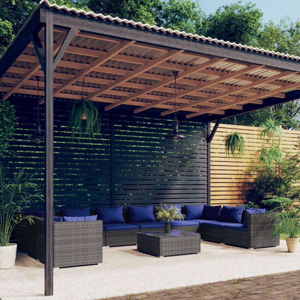 Zrelaksuj się i ciesz czasem spędzonym z przyjaciółmi i rodziną na świeżym powietrzu za sprawą tego ogrodowego, polirattanowego zestawu wypoczynkowego z poduszkami! Modułowa konstrukcja: umożliwia również ustawienie siedziska w dowolnej aranżacji, zestawiając go z innymi modułami mebli, aby spełnić Twoje oczekiwania.Materiał premium: zestaw wypoczynkowy na patio został zaprojektowany z wodoodpornego rattanu PE, dzięki czemu jest wytrzymały i nadaje się do codziennego użytku na zewnątrz.Solidna rama: ten zestaw wypoczynkowy na zewnątrz ma solidną stalową ramę malowaną proszkowo i plastikowe nóżki w kolorze chromu, które są bardzo trwałe. Za sprawą lekkiej konstrukcji siedzisko można bez problemu przestawiać.Wygodne poduszki: grubo wyściełane poduszki na siedziska i oparcia wykonane z tkaniny są miękkie w dotyku i zapewniają dodatkowy komfort. Uwaga:Aby przedłużyć żywotność mebli ogrodowych, zalecamy zabezpieczenie ich wodoodpornym pokrowcem.