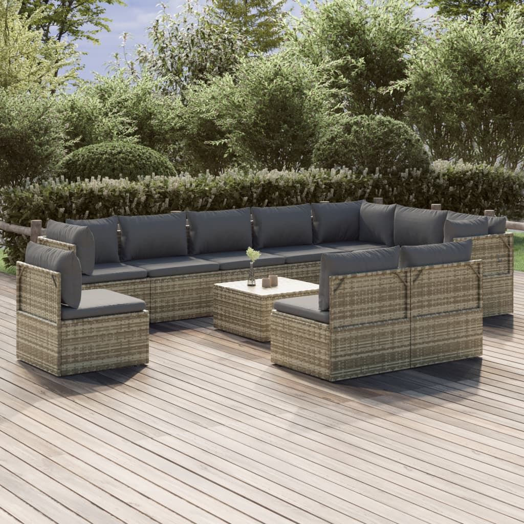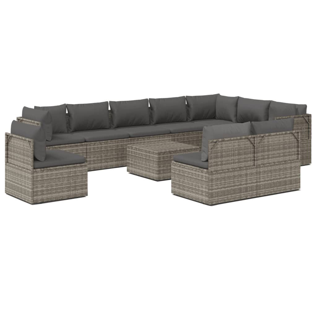 11-cz. zestaw wypoczynkowy do ogrodu, poduszki, szary rattan PE