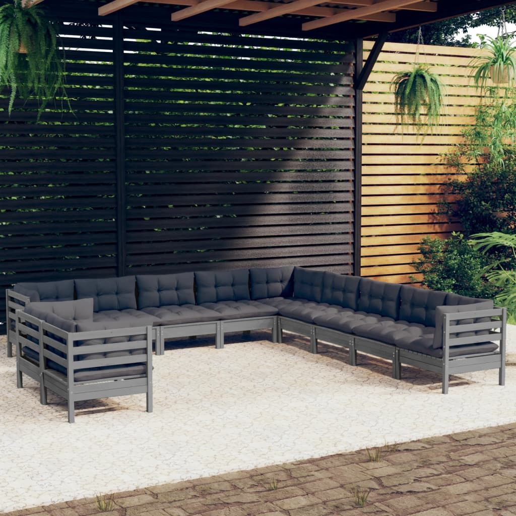 11-cz. zestaw wypoczynkowy do ogrodu, poduszki, szary, sosnowy
