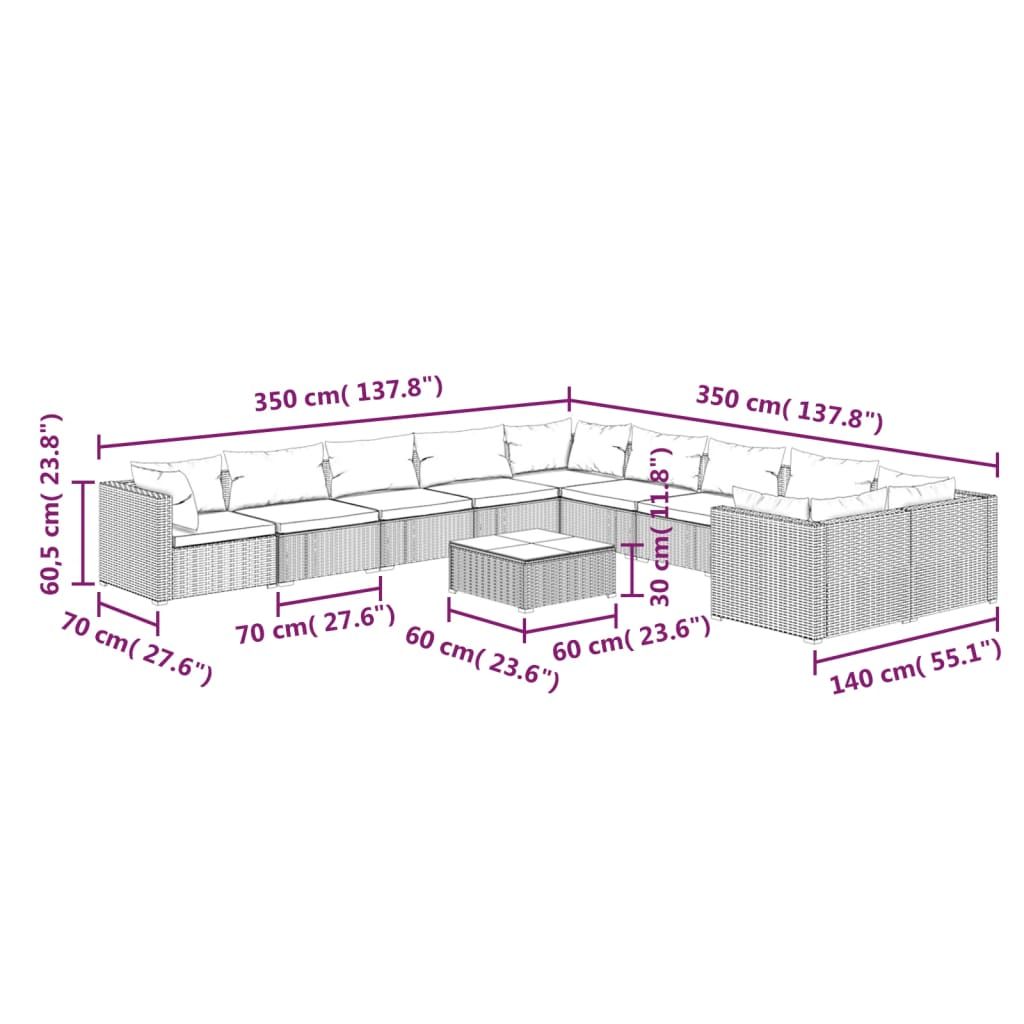 Zrelaksuj się i ciesz czasem spędzonym z przyjaciółmi i rodziną na świeżym powietrzu za sprawą tego klasycznego, polirattanowego zestawu wypoczynkowego z poduszkami do ogrodu! Wysokiej jakości materiał: zestaw wypoczynkowy na patio został wykonany z odpornego na czynniki pogodowe rattanu PE, dzięki czemu jest łatwy w czyszczeniu, wytrzymały i odpowiedni do codziennego użytku na zewnątrz.Solidna rama: ten ogrodowy zestaw wypoczynkowy zawiera malowane proszkowo ramy ze stali i plastikowe, chromowane nóżki, zapewniając wytrzymałość.Wygodne poduszki: grubo wyściełane i zdejmowane poduszki z tkaniny są miękkie w dotyku i zapewnią Ci większy komfort.Modułowa konstrukcja: zestaw rattan PE jest modułowy i lekki. Można więc ustawiać go w dowolnej aranżacji lub zestawiać z innymi modułami mebli, aby spełnić swoje oczekiwania. Uwaga:Aby przedłużyć żywotność mebli ogrodowych, zalecamy zabezpieczenie ich wodoodpornym pokrowcem.