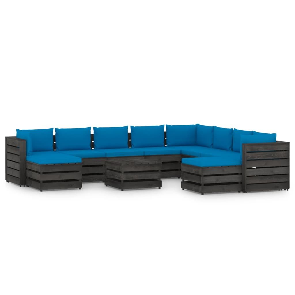 Ten ogrodowy zestaw wypoczynkowy stanowi znakomity wybór, aby się zrelaksować i nacieszyć dobrą pogodą albo zdrzemnąć lub porozmawiać z rodziną i przyjaciółmi. Za sprawą ponadczasowej konstrukcji z palet wniesie on odrobinę rustykalnego uroku na Twoje patio, do ogrodu lub do salonu. Wykonany z impregnowanego drewna sosnowego zestaw wypoczynkowy z palet jest trwały, odporny na czynniki atmosferyczne i przyjazny dla środowiska. Ma on solidną konstrukcję i nie wymaga zbyt wielu czynności konserwacyjnych. W połączeniu z grubo wyściełanymi poduszkami zapewnia najwyższy komfort. Dodatkowo modułowa konstrukcja umożliwia ustawienie go w dowolnej aranżacji, zgodnie z własnym gustem. Uwaga: aby przedłużyć żywotność mebli ogrodowych, zalecamy zabezpieczenie ich wodoodpornym pokrowcem.