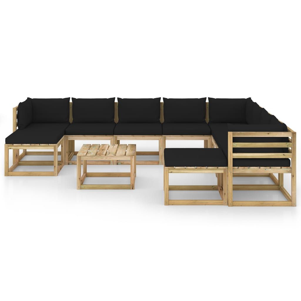 Ten ogrodowy zestaw wypoczynkowy stanowi znakomity wybór, aby się zrelaksować i nacieszyć dobrą pogodą albo zdrzemnąć lub porozmawiać z rodziną i przyjaciółmi. Za sprawą ponadczasowej konstrukcji z palet wniesie on odrobinę rustykalnego uroku na Twoje patio, do ogrodu lub do salonu. Wykonany z impregnowanego drewna sosnowego zestaw wypoczynkowy z palet jest trwały, odporny na czynniki atmosferyczne i przyjazny dla środowiska. Ma on solidną konstrukcję i nie wymaga zbyt wielu czynności konserwacyjnych. W połączeniu z grubo wyściełanymi poduszkami zapewnia najwyższy komfort. Dodatkowo modułowa konstrukcja umożliwia ustawienie go w dowolnej aranżacji, zgodnie z własnym gustem. Uwaga: aby przedłużyć żywotność mebli ogrodowych, zalecamy zabezpieczenie ich wodoodpornym pokrowcem.