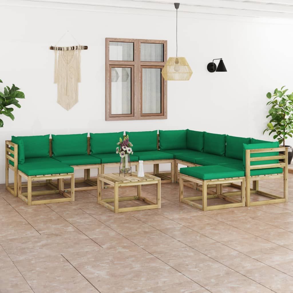 Ten ogrodowy zestaw wypoczynkowy stanowi znakomity wybór, aby się zrelaksować i nacieszyć dobrą pogodą albo zdrzemnąć lub porozmawiać z rodziną i przyjaciółmi. Za sprawą ponadczasowej konstrukcji z palet wniesie on odrobinę rustykalnego uroku na Twoje patio, do ogrodu lub do salonu. Wykonany z impregnowanego drewna sosnowego zestaw wypoczynkowy z palet jest trwały, odporny na czynniki atmosferyczne i przyjazny dla środowiska. Ma on solidną konstrukcję i nie wymaga zbyt wielu czynności konserwacyjnych. W połączeniu z grubo wyściełanymi poduszkami zapewnia najwyższy komfort. Dodatkowo modułowa konstrukcja umożliwia ustawienie go w dowolnej aranżacji, zgodnie z własnym gustem. Uwaga: aby przedłużyć żywotność mebli ogrodowych, zalecamy zabezpieczenie ich wodoodpornym pokrowcem.