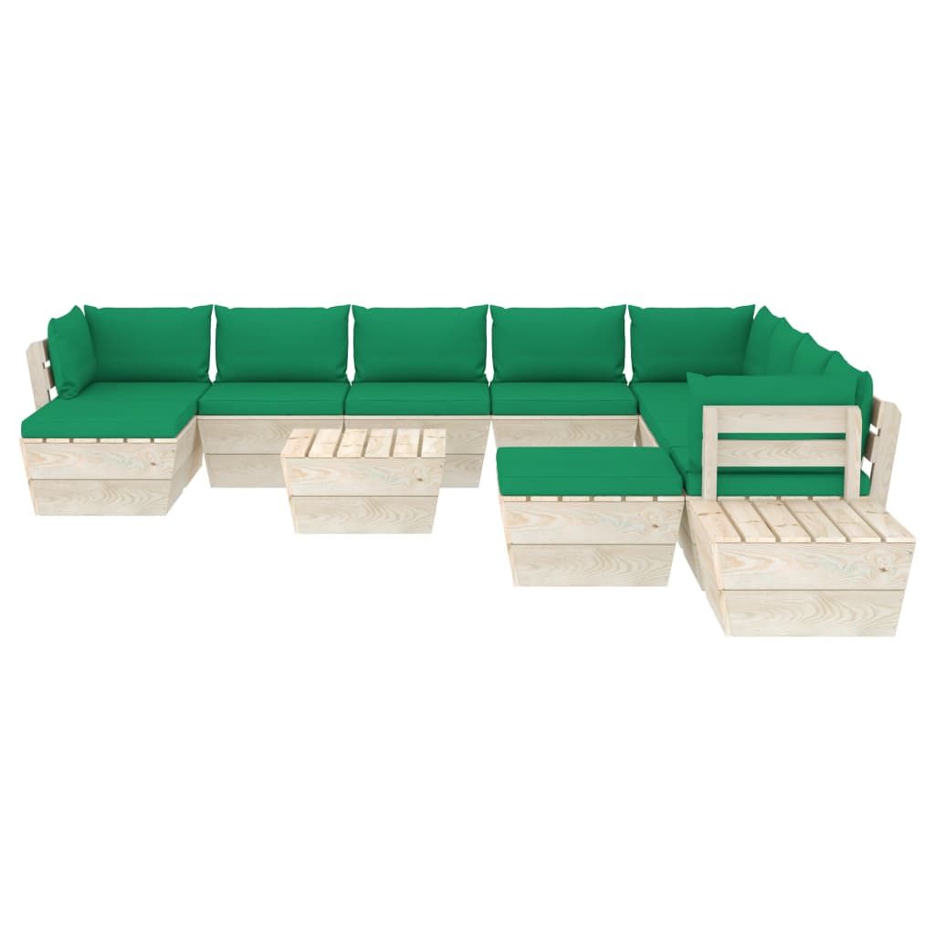 12-cz. ogrodowy zestaw wypoczynkowy z palet, poduszki, świerk