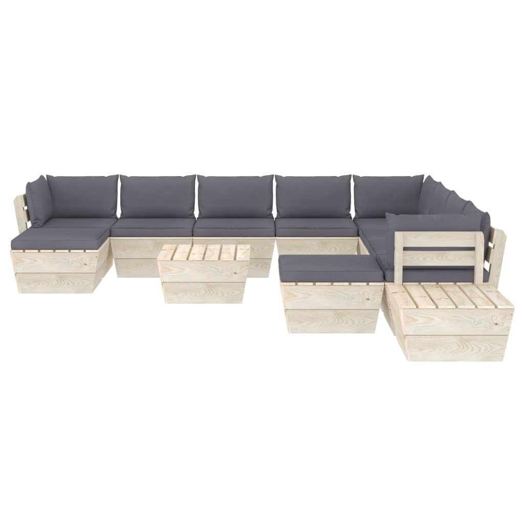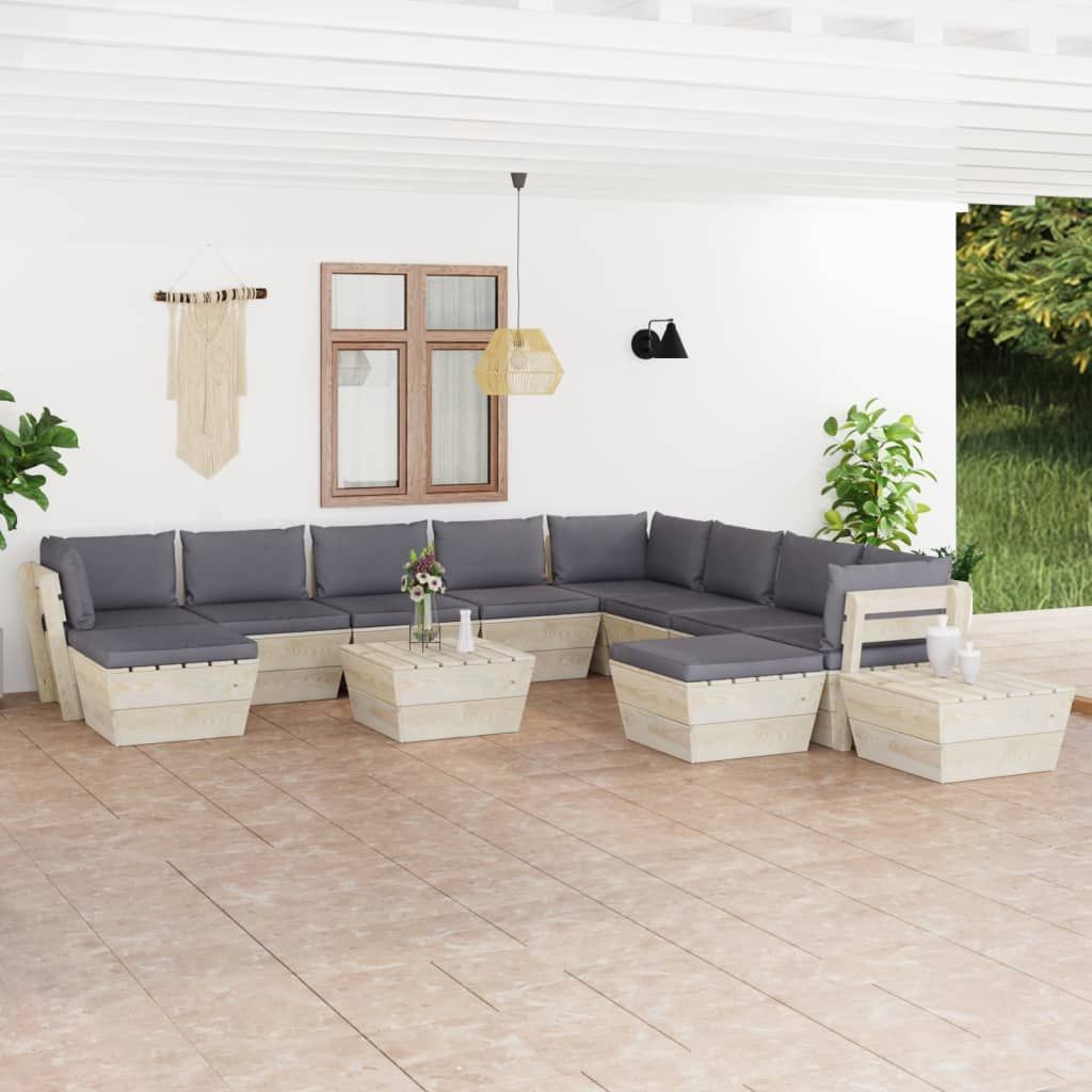 12-cz. ogrodowy zestaw wypoczynkowy z palet, poduszki, świerk