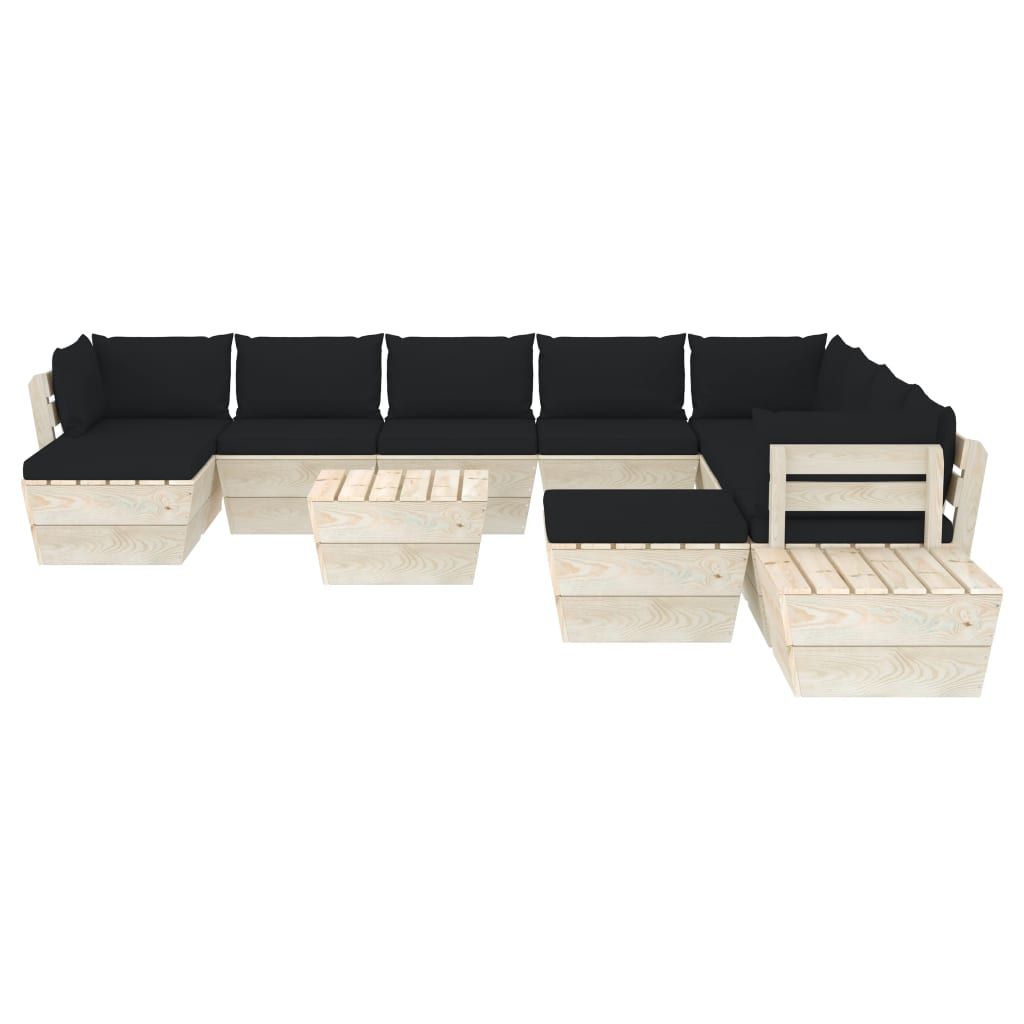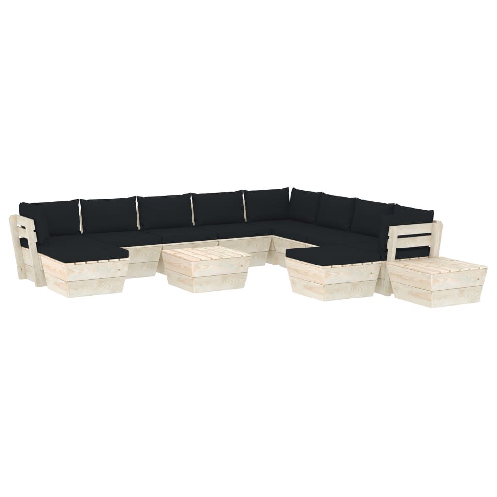 12-cz. ogrodowy zestaw wypoczynkowy z palet, poduszki, świerk